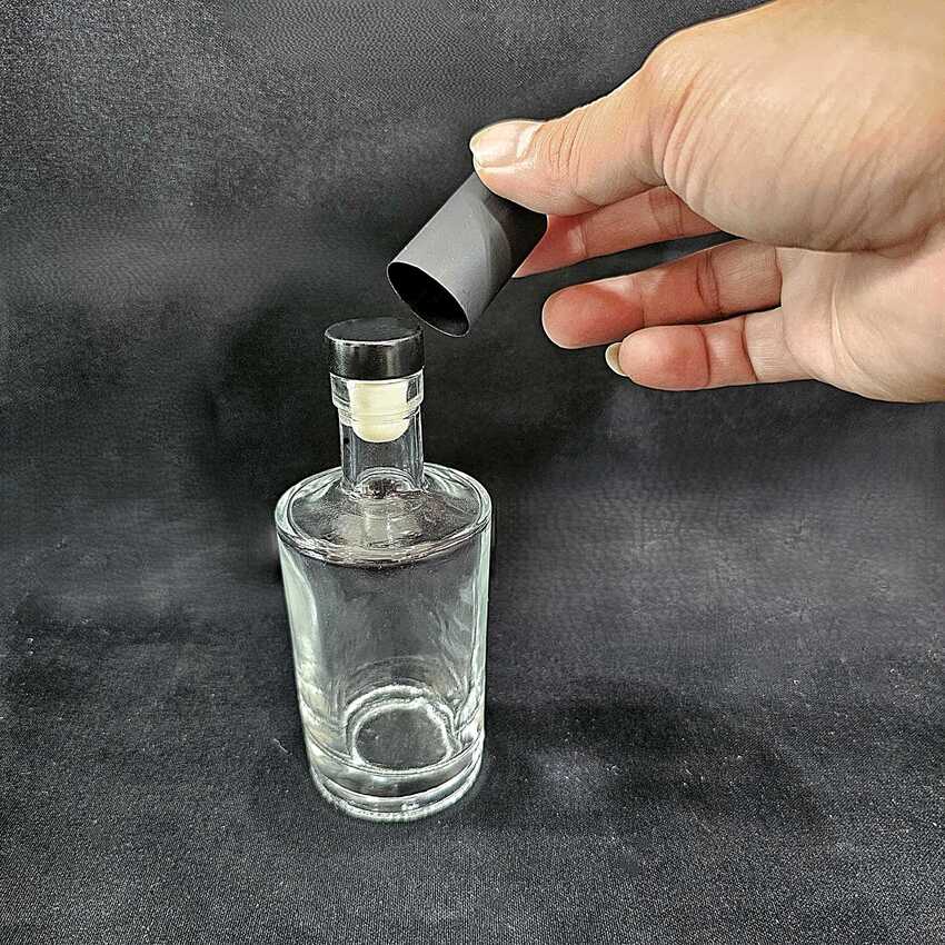 Mua tại TiktokChai Thủy Tinh Mini mẫu vốt ka nắp cao su kèm màng co Lọ Thủy Tinh Nhỏ 100ML trụ tròn vai xòe – Chai Đựng Rượu Mini (F2) Glass bottle 100ML – cylinder shape – Wide shoulder design (F2 pattern)
