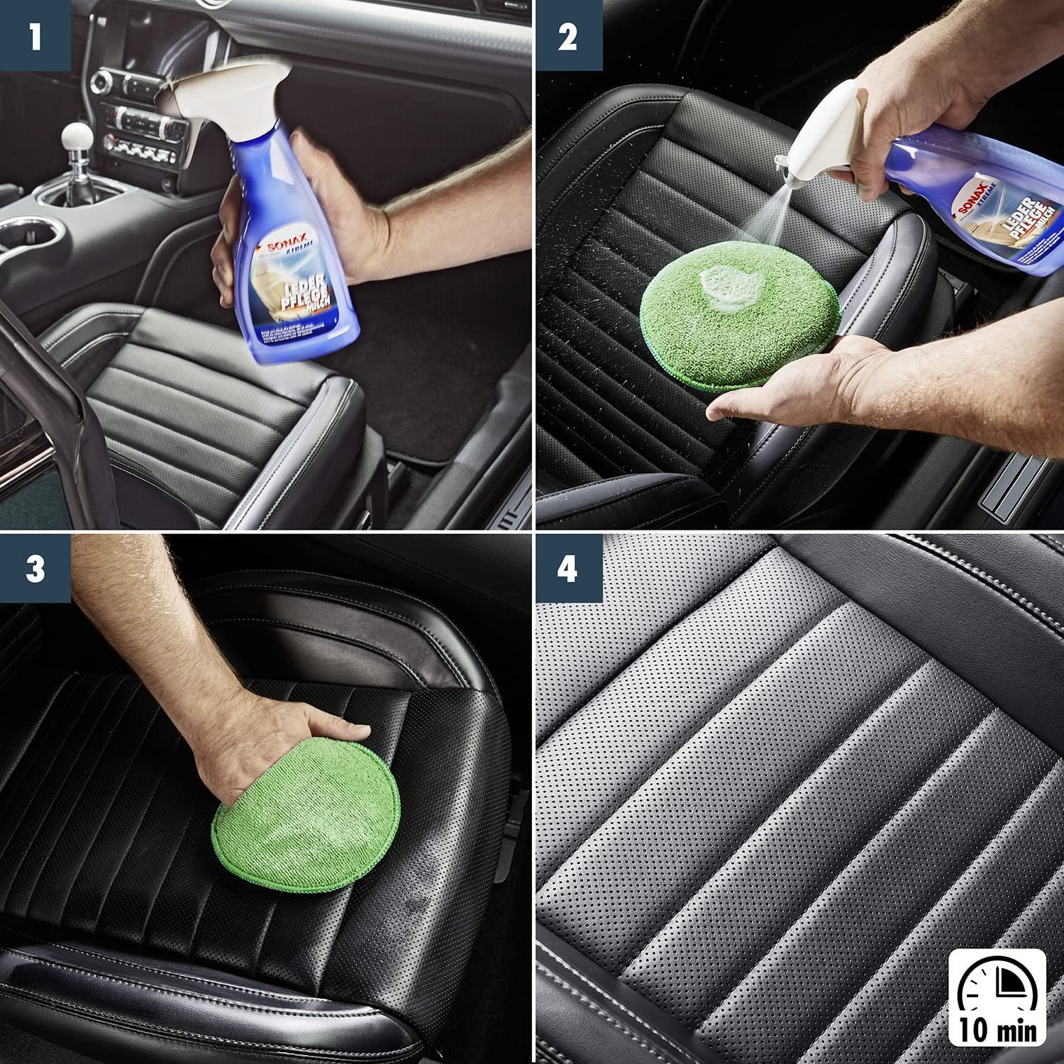 Mua tại TiktokGiới thiệu Chai xịt dưỡng da ô tô cao cấp Leather Care Milk Xtreme Sonax 254241 500ml Chai xịt dưỡng da ô tô cao cấp Leather Care Milk Xtreme Sonax 254241 500ml để làm sạch và bảo dưỡng chuyên sâu da thật và da tổng hợp mịn như ghế da ô tô, sofa da, quần áo da, phụ kiện đồ da, da nội thất, Chứa dầu jojoba hấp thụ bảo dưỡng, mang lại sự mềm dễ chịu mà không có vẻ trơn trượt. Với hương thơm da thuộc dễ chịu.
