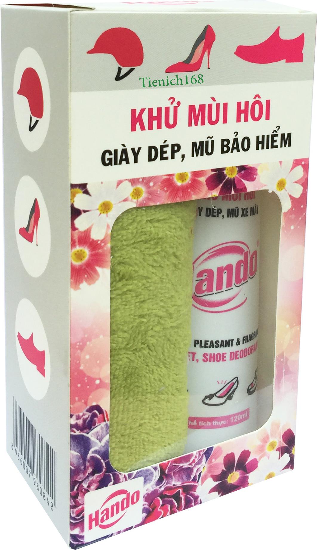 Thông tin sản phẩm Tên sản phẩm : Chai xịt khử mùi giầy, dép, mũ bảo hiểm 120ml Hando Hướng dẫn sử dụng : Xịt vào giày, dép, mũ xe máy trước khi sử
