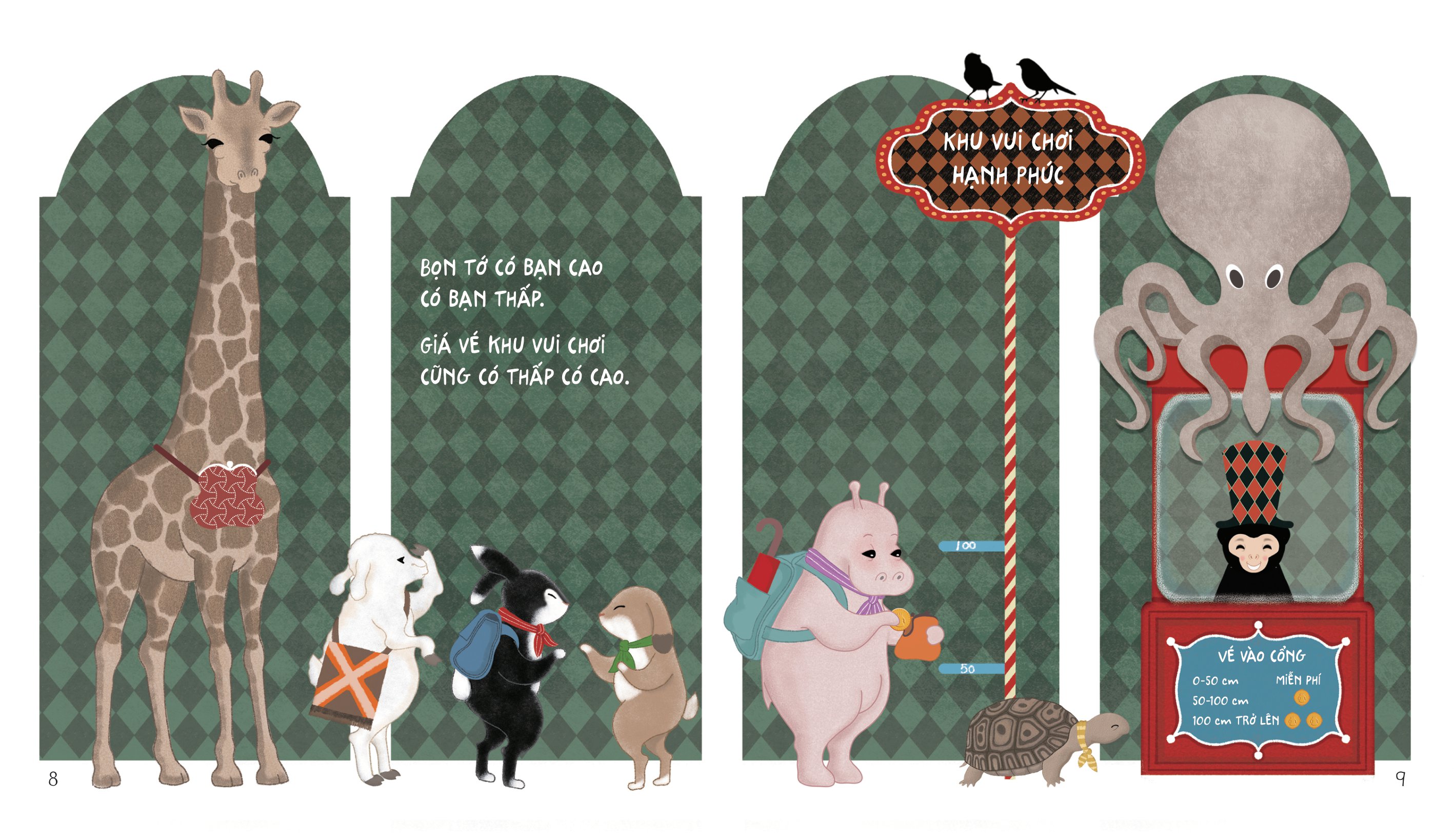 Mời bạn cùng chúng tớ đến khu vui chơi Hạnh Phúc một ngày. Bao nhiêu là trò vui, này đu quay, tàu lượn, này bập bênh, chèo thuyền… Còn niềm vui nào hơn khi được chơi cùng nhau, được chia sẻ bánh kẹo và che chung chiếc ô nhỏ. Có bạn bè cạnh bên chính là việc vui nhất trên đời!