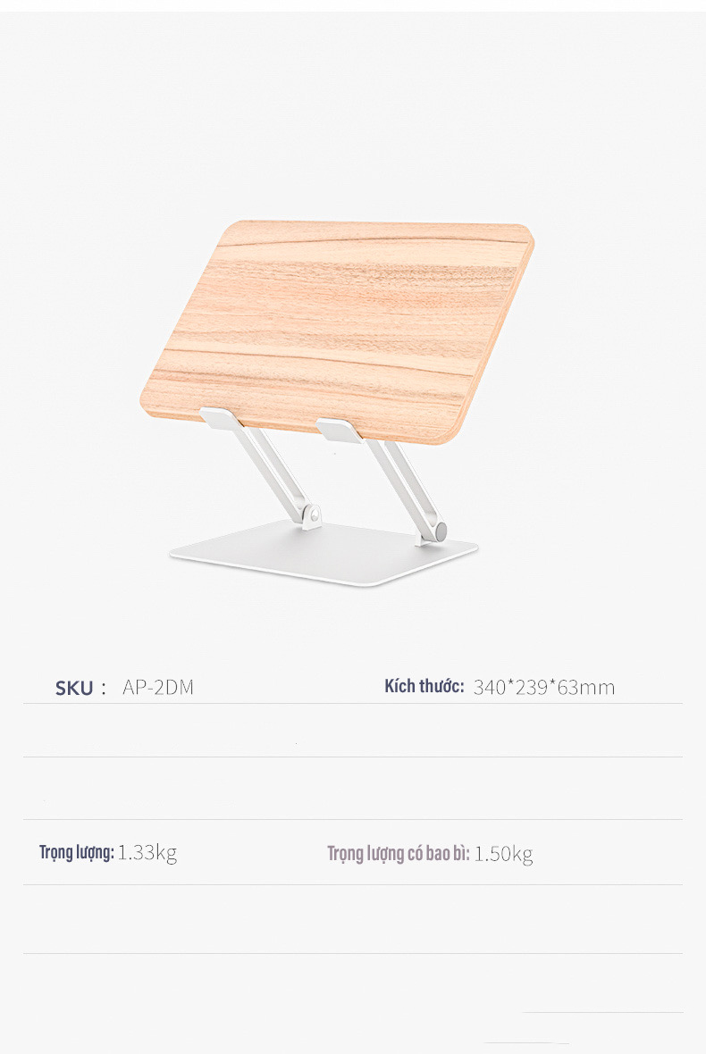 - Chân đế dùng dựng laptop, tablet sử dụng chống gù lưng, làm việc đúng tư thế.