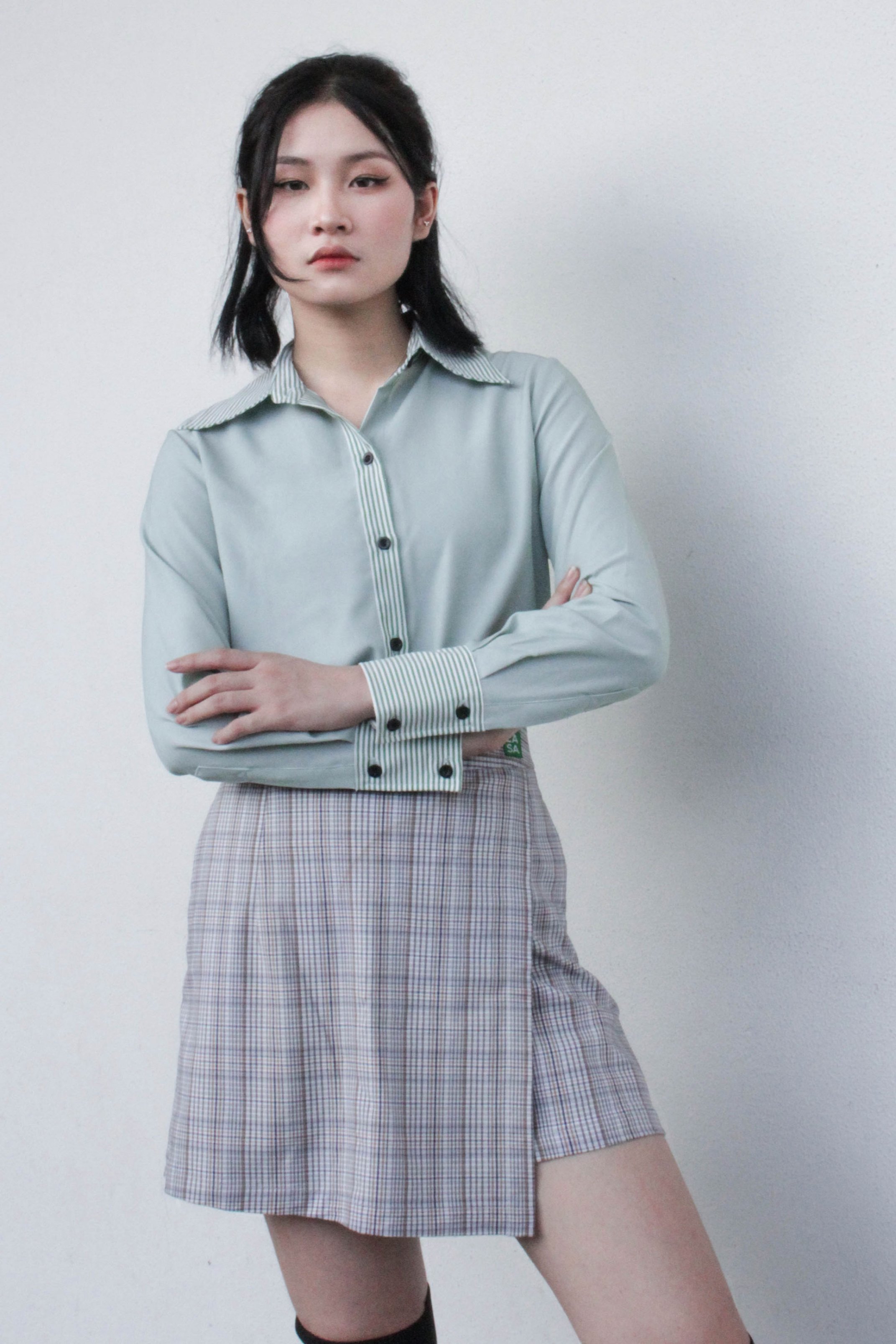 ✨Chân váy vạt đắp xếp ly caro