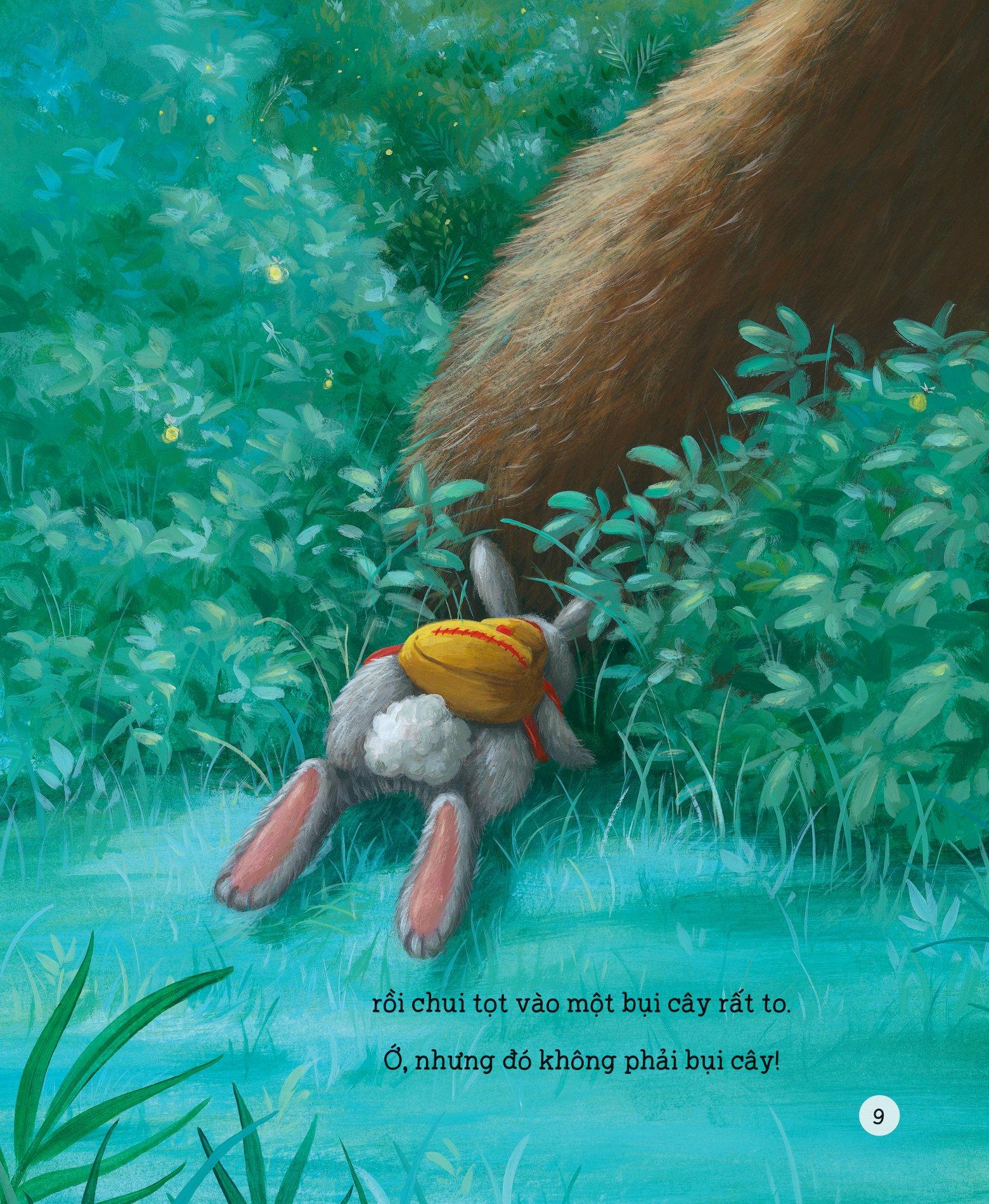 Cuốn Gã khổng lồ lông lá nhút nhát kể về câu chuyện của bé thỏ quyết tâm vào rừng để tìm gã quái vật khổng lồ lông lá. Nhưng thay vì tìm ra quái vật, bé thỏ lại phát hiện ra gã khổng lồ lông lá lại chính là bạn gấu bự nhút nhát hằng ngày. Bạn ấy đã trở nên mạnh mẽ khi đứng ra bảo vệ cho bé thỏ thoát khỏi nguy hiểm.