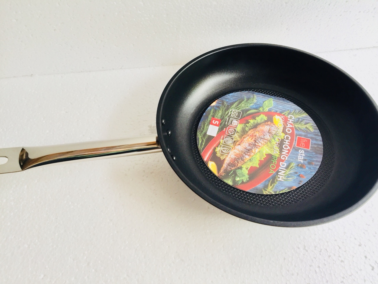 Chảo chống dính Five Star sử dụng chất liệu inox 304 cao cấp, giúp sản phẩm luôn giữ được độ bền đẹp, sáng bóng như mới.