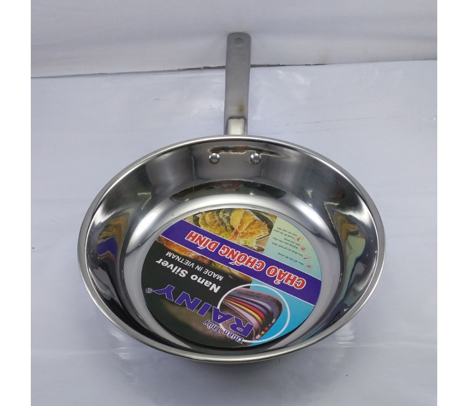 chảo inox chống dính được thiết kế tay cầm cán dài cách nhiệt tốt, an toàn khi sử dụng.
