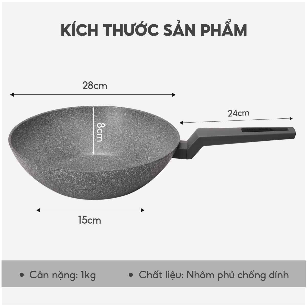 ĐẶC ĐIỂM NỔI BẬT: Chống dính vân đá an toàn cho sức khỏe Chất liệu nhôm tấm có độ dày 2.1 mm Truyền nhiệt nhanh, tiết kiệm nhiên liệu Bên ngoài được sơn màu chịu