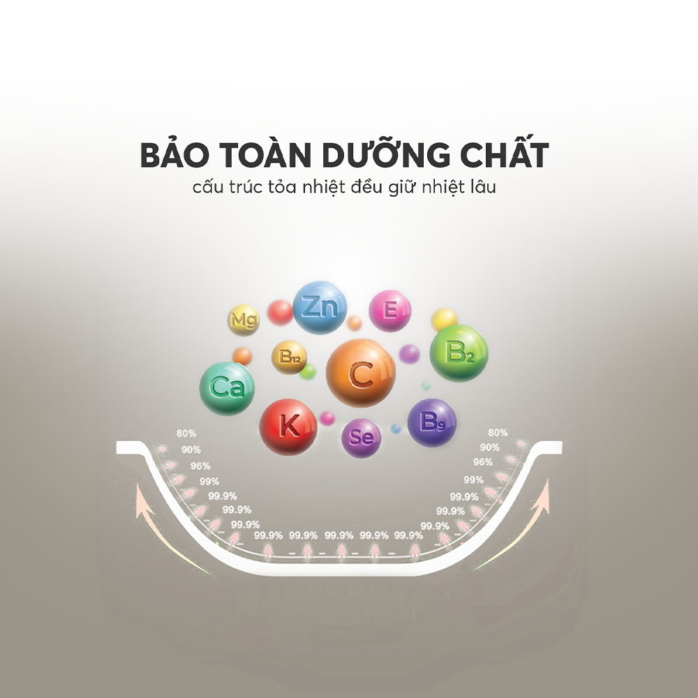 - Cấu tạo nguyên khối (đáy liền thân 3 lớp) giữ nhiệt tốt, truyền nhiệt nhanh
