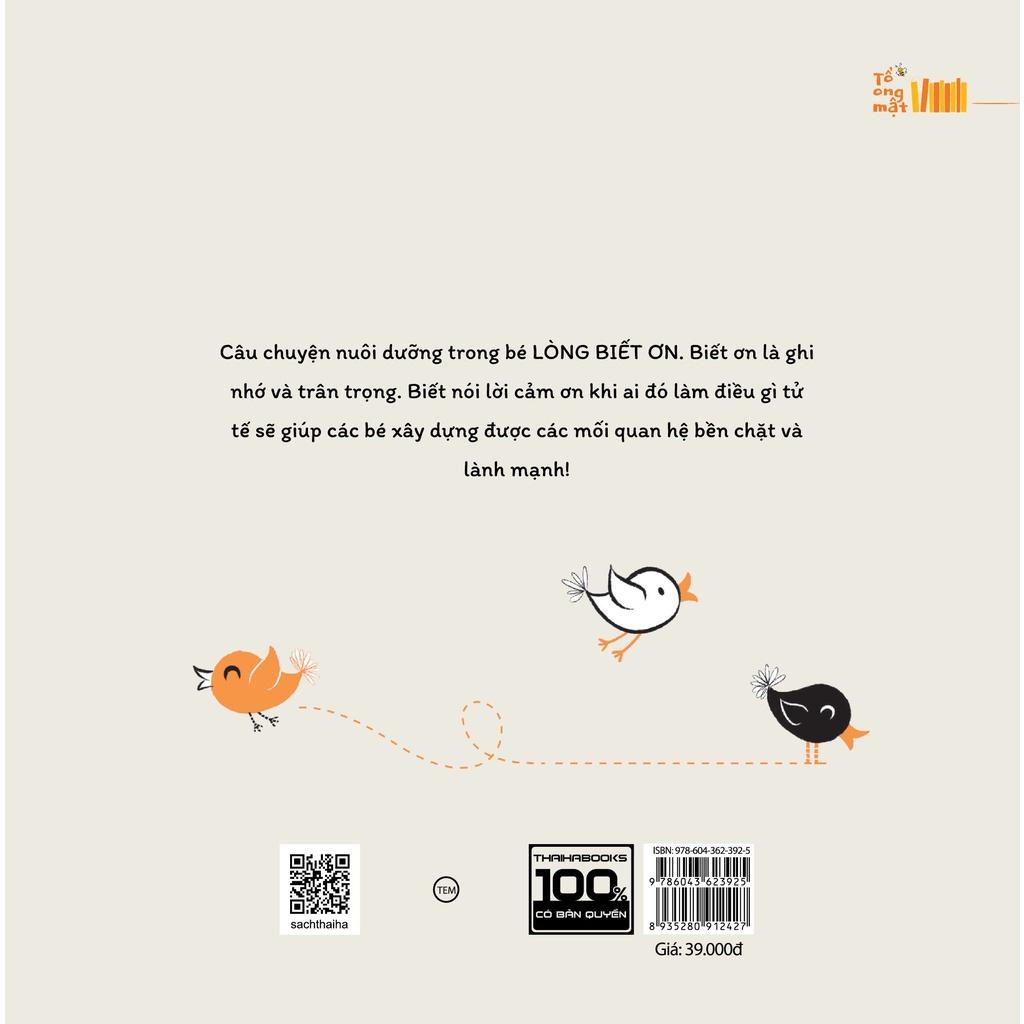 “Chập chững lớn lên – Cảm ơn nhé!” Dành cho các bé từ độ tuổi 3+. Bộ sách song ngữ Anh – Việt “Chập chững lớn lên” với những câu chuyện đơn giản và hình ảnh minh họa hấp dẫn, mở ra những cuộc trò chuyện về cảm xúc và sức khỏe tinh thần, cung cấp cho cha mẹ những công cụ và ngôn ngữ cần thiết để phát triển và nuôi dưỡng trí tuệ cảm xúc ở trẻ. “Cảm ơn nhé!” giới thiệu và phát triển ý tưởng về LÒNG BIẾT ƠN cho trẻ em từ 1–3 tuổi. Có bao nhiêu cách bạn có thể nói lời cảm ơn? Tiếng vẫy đuôi của con chó, tiếng chim hót, tiếng ngựa hí, nụ cười của một đứa trẻ — một người mẹ và bé gái khám phá ra những cách thể hiện lòng biết ơn khác nhau khi họ dắt chú chó của gia đình đi dạo. Những nghiên cứu gần đây cho thấy rằng sự phát triển cảm xúc bắt đầu từ giai đoạn sơ sinh, khi trẻ lần đầu tiên gắn bó với người chăm sóc của mình. Phát triển trí tuệ cảm xúc sớm giúp