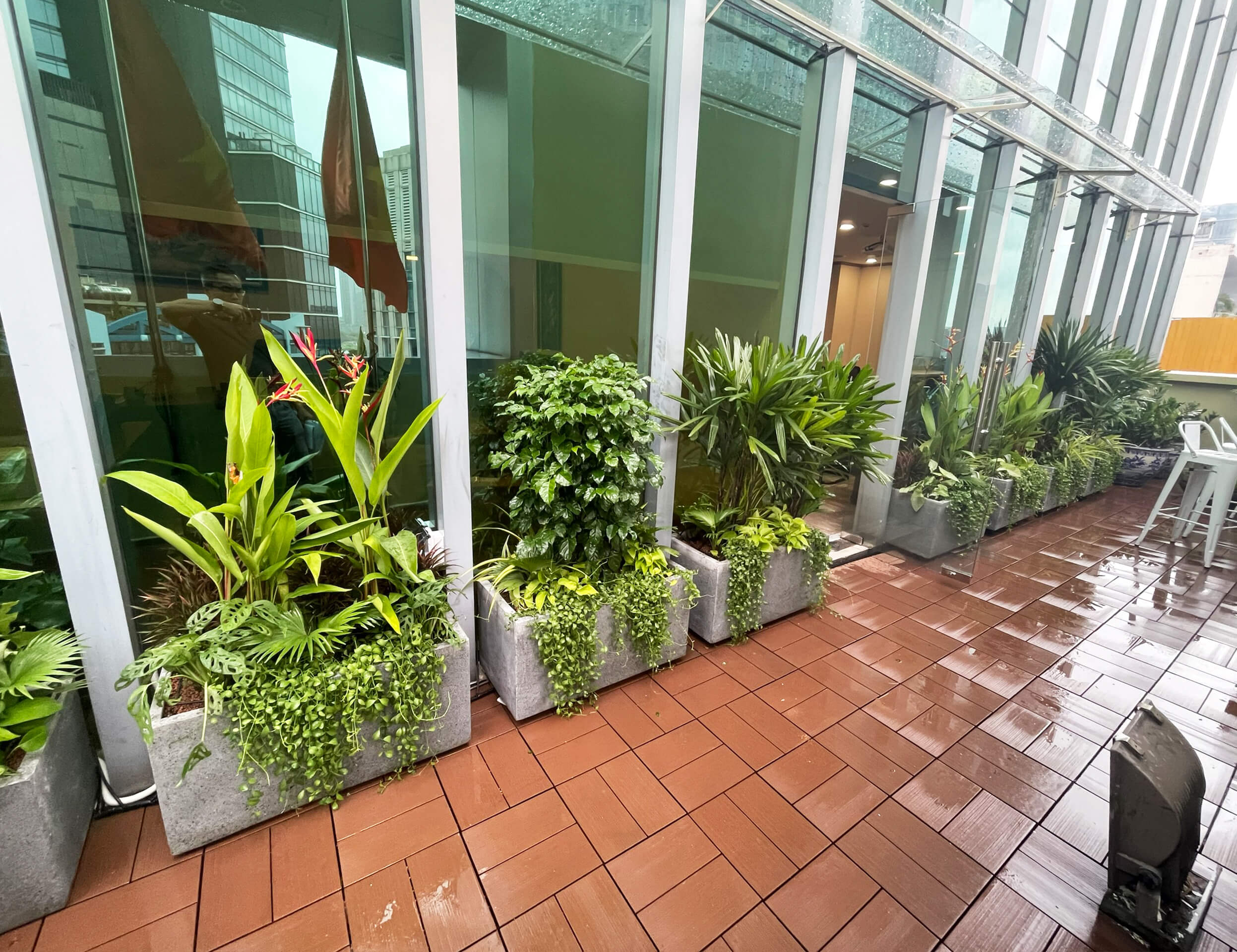 Trồng cây tranh trí ban công chung cư hay cây ban công văn phòng bằng chậu đá mài là cách lựa chọn Đơn giản hơn và tiết kiệm chi phí hơn sơ với những mảng cây tường đứng phủ xanh gồm: