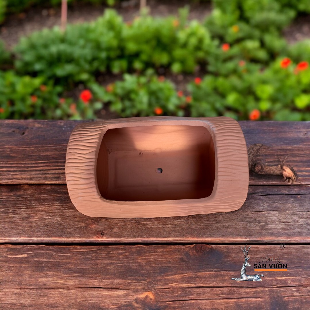 ✨Chậu Gốm Đất Nung Hình Gốc Cây Ngang 40x20x25cm