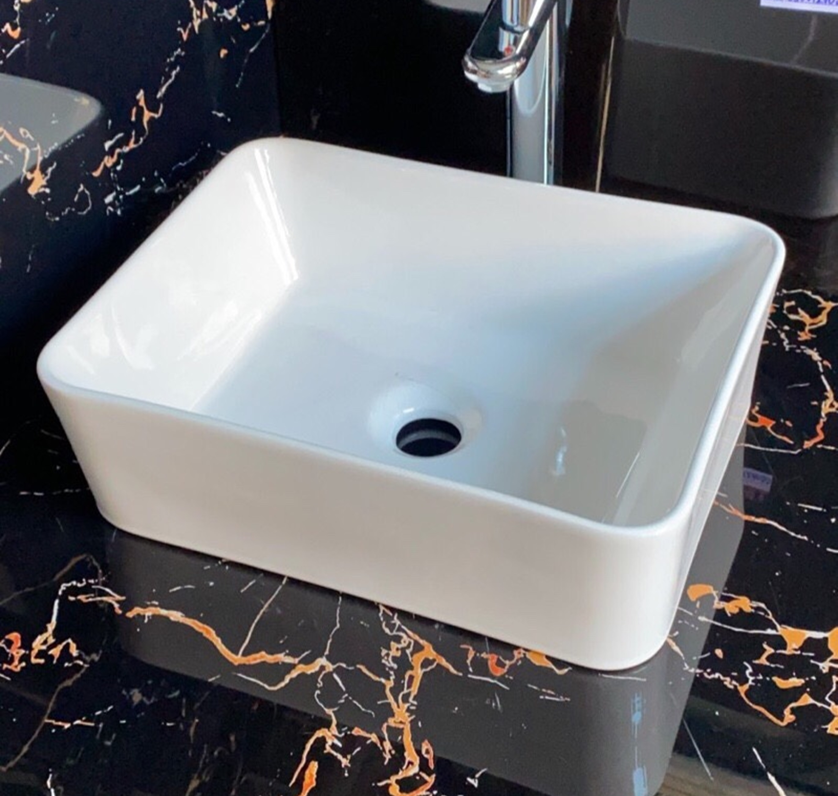 Sản phẩm: Chậu rửa lavabo đặt bàn Rangos RG-80005B Thiết kế chậu đặt bàn hình chữ nhật bo góc sang trọng Công nghệ FFC hiện đại, vật liệu từ cao lanh chất lượng cao Nhiệt