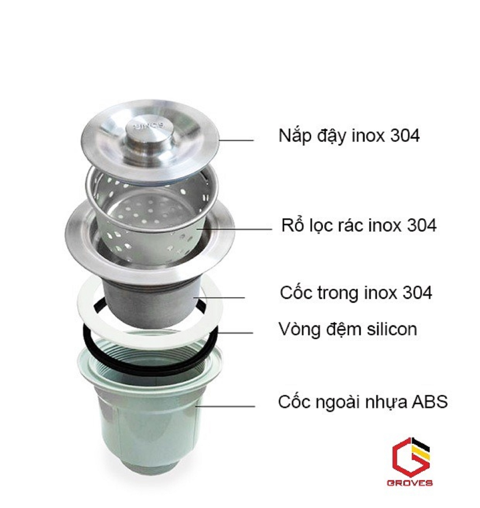 Chất liệu: Inox 304 Màu sắc" Inox mờ Bảo hành 24 tháng Chế tạo khuôn ép nguyên tấm 100% Bộ lọc rác inox 304, xi phông nhựa PP cao cấp Không tiếp xúc trực tiếp