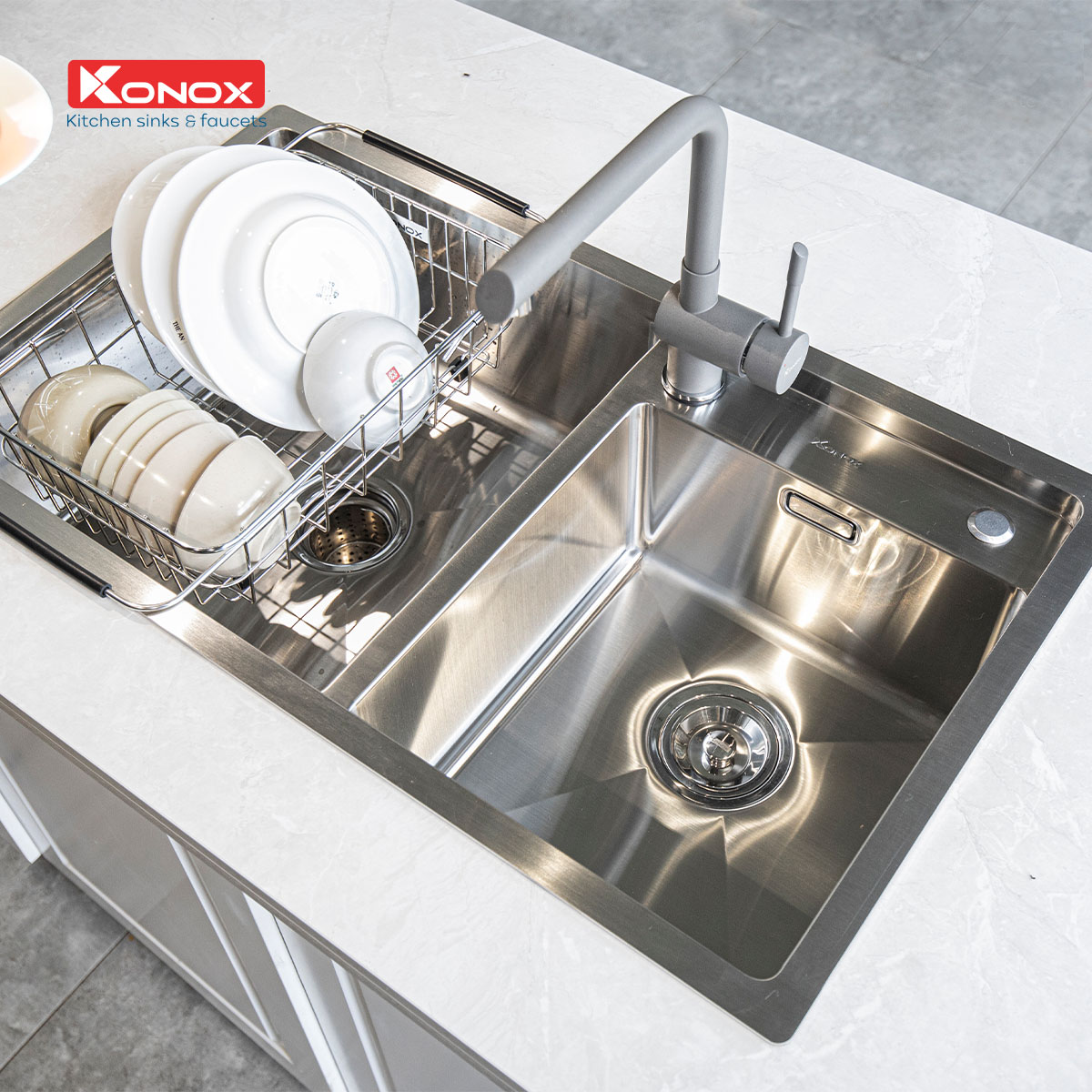 Chậu rửa bát Overmount Sink KN8248DO thuộc dòng sản phẩm Overmount Series của Konox – dòng sản phẩm hướng tới phân khúc trung cấp của thị trường và vẫn được sử dụng toàn bộ chất liệu cao cấp.