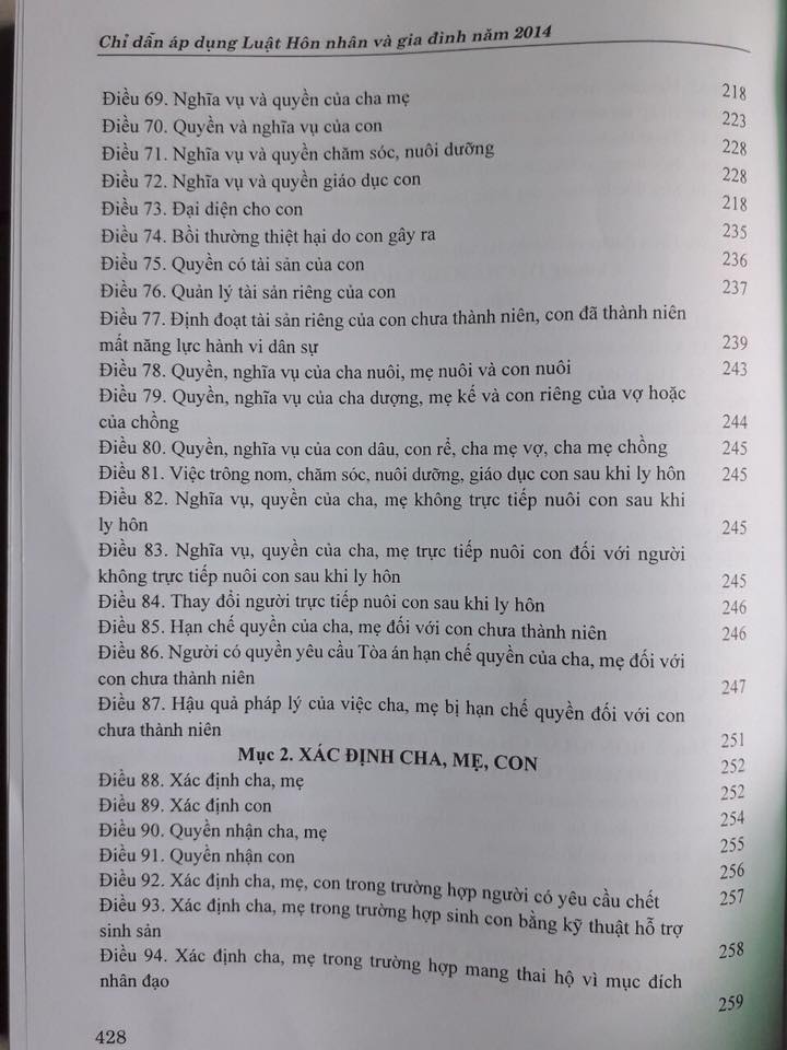 Mục lục: Chương 1: Những quy định chung Chương 2: Kết hôn Chương 3: Quan hệ giữa và chồng Chương 7: Cấp dưỡng Chương 8: Quan hệ hôn nhân và gia đinh có yếu tố