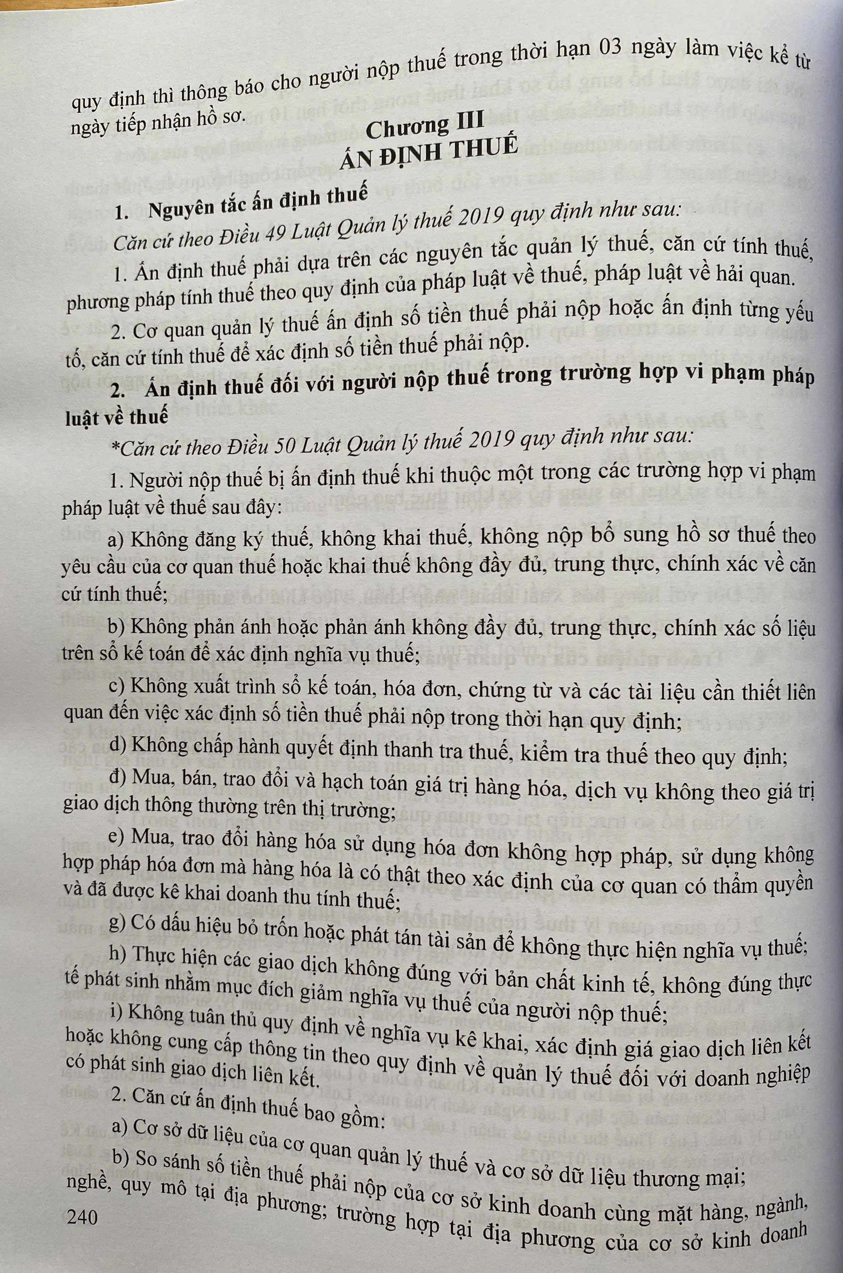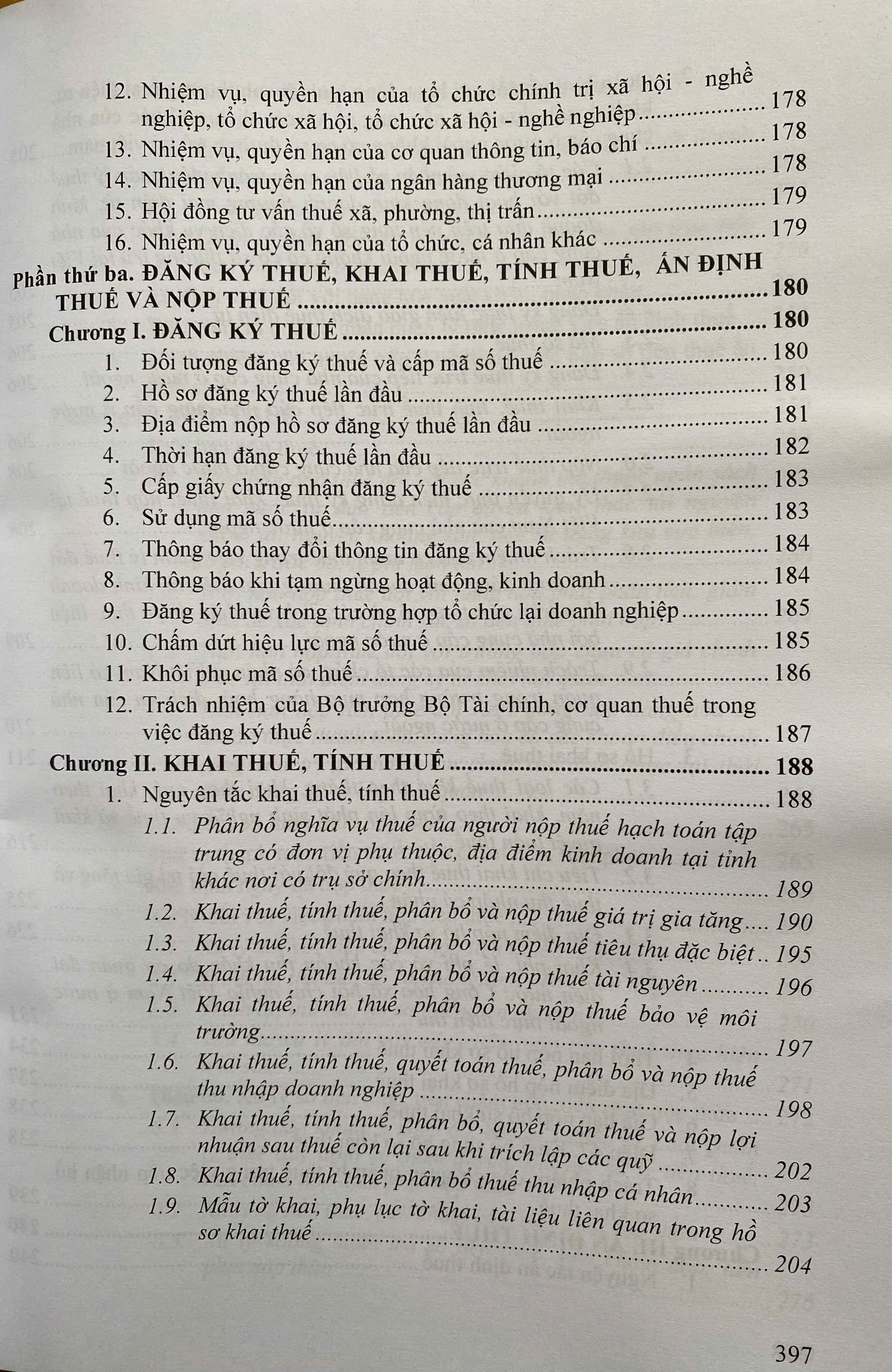 Phần thứ hai. KHÁI NIỆM CHUNG VÀ NHIỆM VỤ, QUYỀN HẠN VÀ TRÁCH NHIỆM CỦA CƠ QUAN, TỔ CHỨC, CÁ NHÂN TRONG QUẢN LÝ THUẾ Phần thứ ba. ĐĂNG KÝ THUẾ, KHAI THUẾ, TÍNH THUẾ, ÁN ĐỊNH THUẾ VÀ NỘP THUẾ.