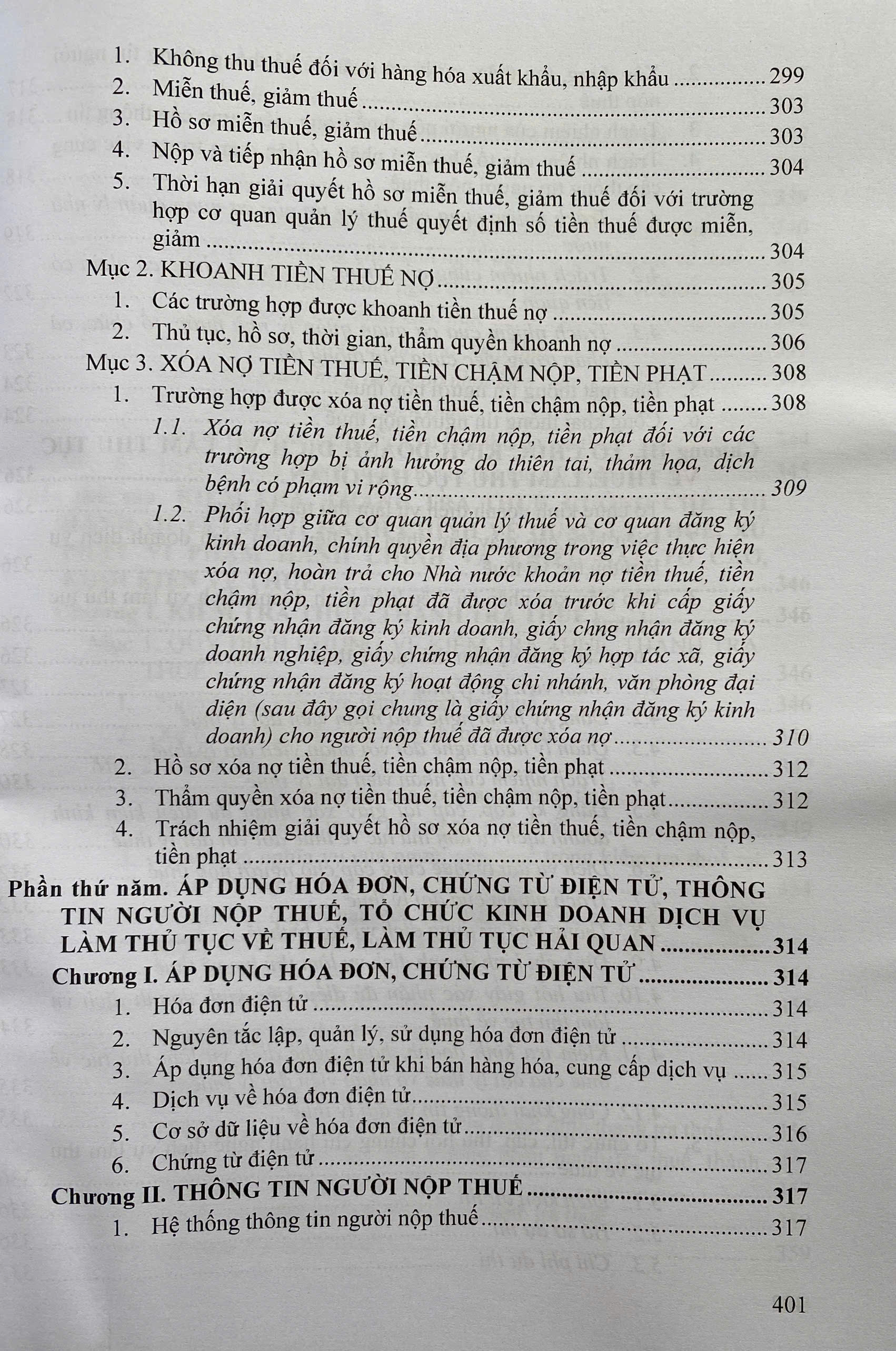 Phần thứ tư: TRÁCH NHIỆM HOÀN THÀNH NGHĨA VỤ NỘP THUẾ, THỬ TỤC HOÀN THUẾ, KHÔNG THU THUẾ, MIỄN THUẾ, GIẢM THUẾ; KHOANH TIỀN THUẾ NỢ; XÓA NỢ TIỀN THUẾ, TIỀN CHẬM NỘP, TIỀN PHẠT.