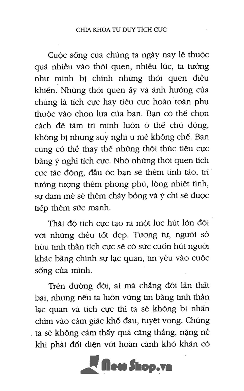 Cuốn Chìa Khóa Tư Duy Tích Cực sẽ là công cụ hữu ích, là người bạn đường đáng tin cậy giúp bạn thực hiện điều trên. Khi dõi theo và từng bước thực hiện những nguyên tắc trong quyển sách này, bạn sẽ trở thành người tích cực và dần dần đạt được ước mơ của mình cũng như tìm thấy chìa khoá mở cánh cửa thành công .