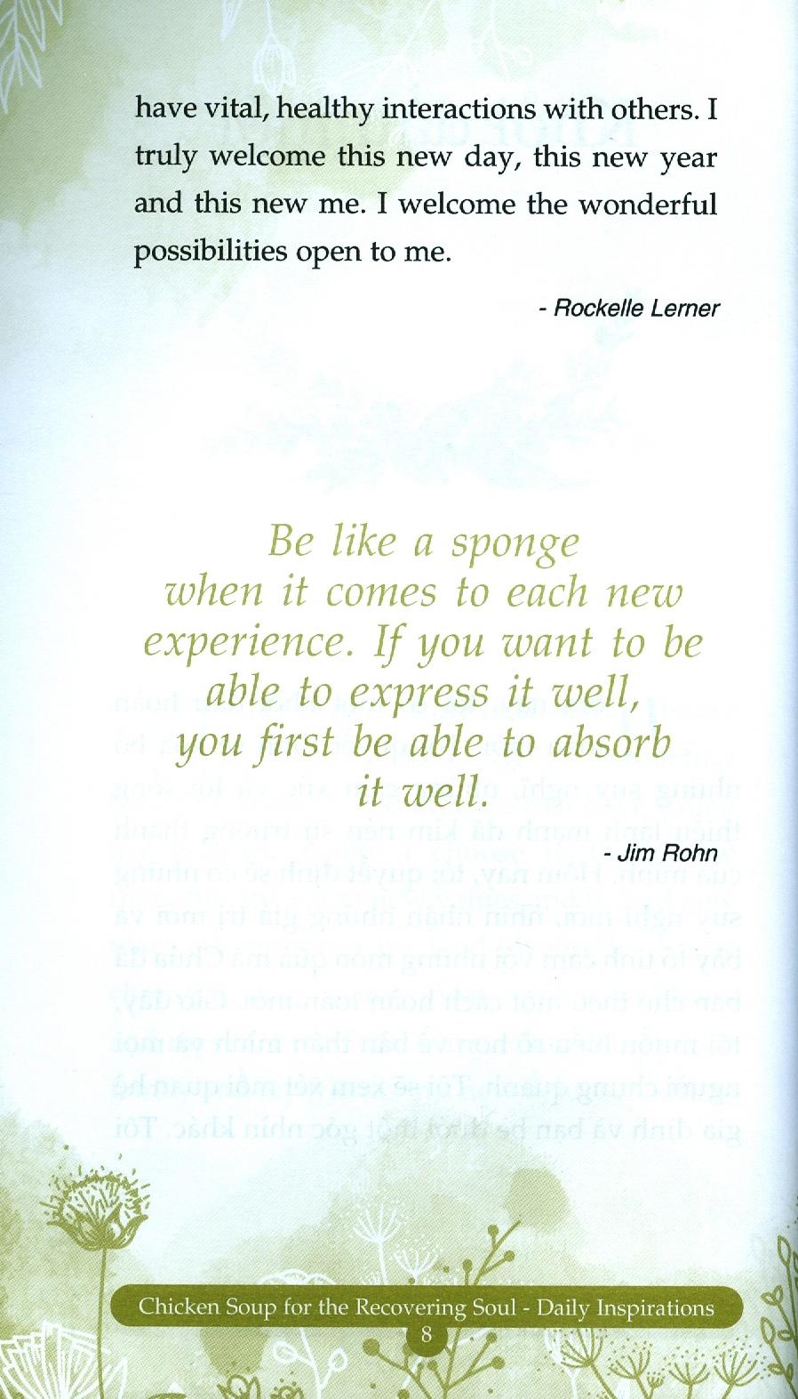 Được trình bày dưới dạng song ngữ Anh – Việt, bạn có thể cảm nhận được ý nghĩa câu chuyện bằng cả hai ngôn ngữ. Với sự chuyển tải trọn vẹn và chính xác của những câu chuyện, hy vọng rằng bạn đọc sẽ nắm được ý nghĩa sâu sắc từ cuốn sách cũng như rèn luyện được vốn Anh ngữ của mình. Chúng tôi tin tưởng rằng những câu chuyện này sẽ làm nên điều khác biệt, mang lại nguồn cảm hứng vô tận để chúng ta sống tốt hơn, và chính bạn cũng sẽ nhận ra rằng cuộc sống tinh thần của bạn cũng tốt hơn sau mỗi lần đọc một câu chuyện hay trong cuốn sách.