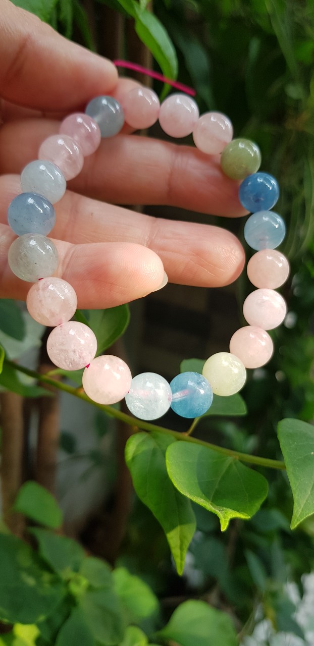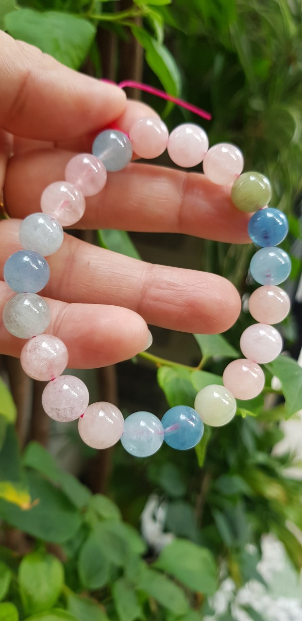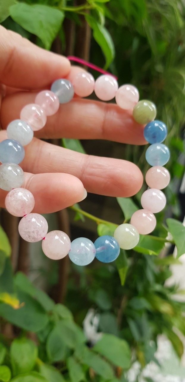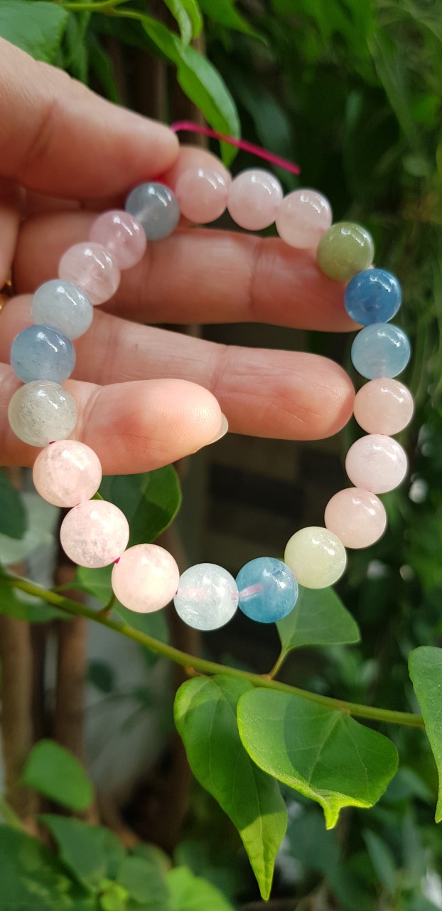 Vòng tay chuỗi Beryl tự nhiên đa sắc màu tươi sáng bóng mượt đẹp size hạt 9mm là sản phẩm phù hợp cho phụ nữ. Với tông màu hồng ngọt ngào kết hợp cùng xanh dương nước biển đậm, chiếc vòng này mang lại cảm giác tươi mới, trẻ trung và rất xinh xắn.