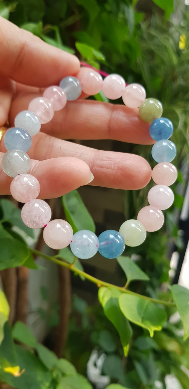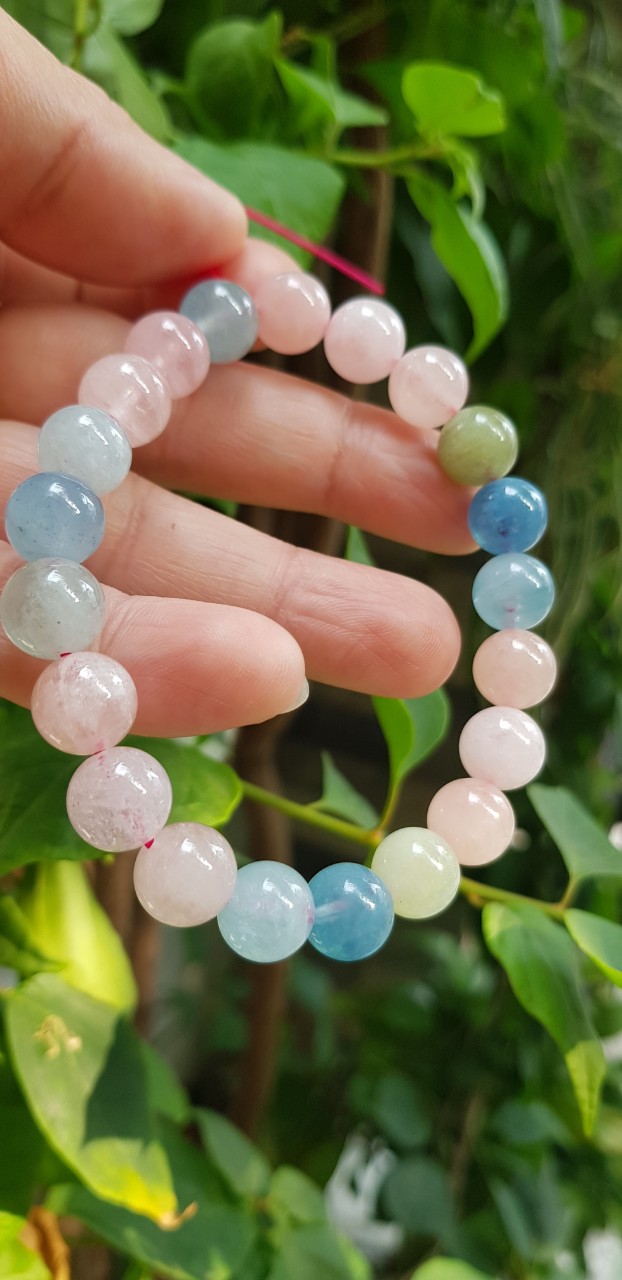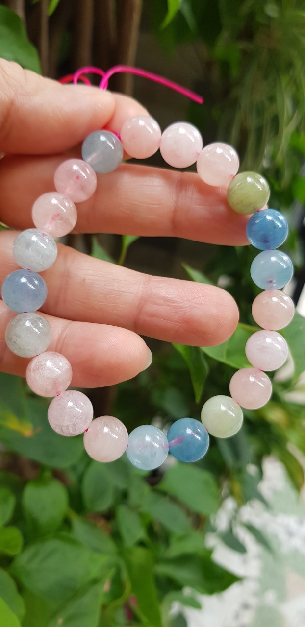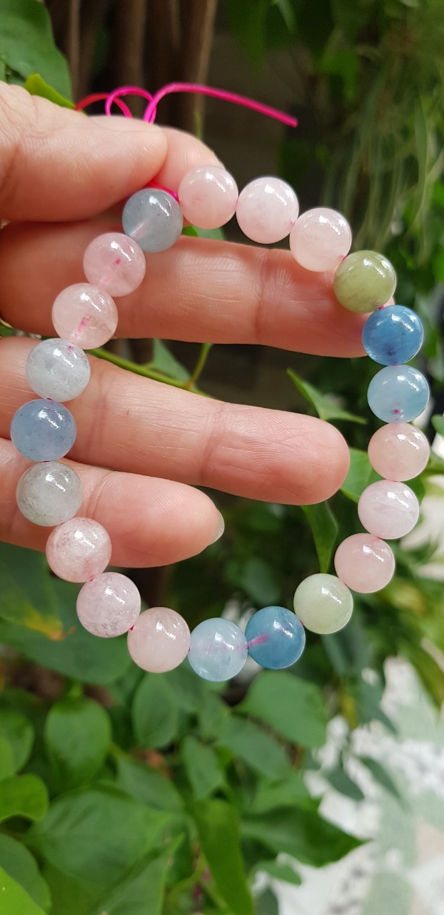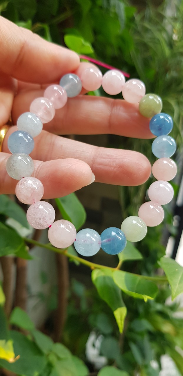 Vòng tay chuỗi Beryl tự nhiên đa sắc màu tươi sáng bóng mượt đẹp size hạt 9mm là sản phẩm phù hợp cho phụ nữ. Với tông màu hồng ngọt ngào kết hợp cùng xanh dương nước biển đậm, chiếc vòng này mang lại cảm giác tươi mới, trẻ trung và rất xinh xắn.