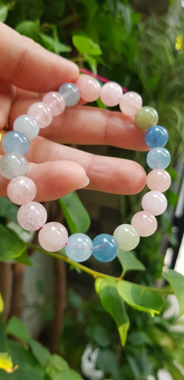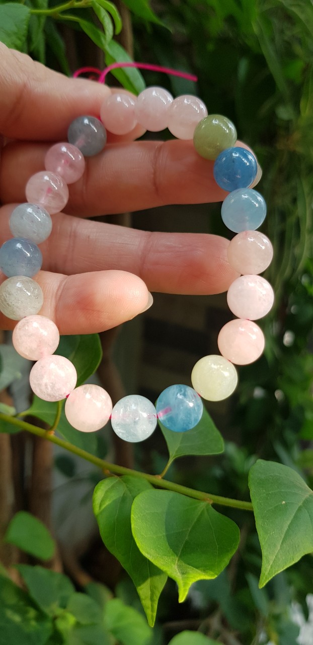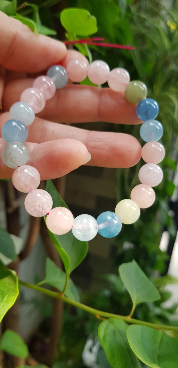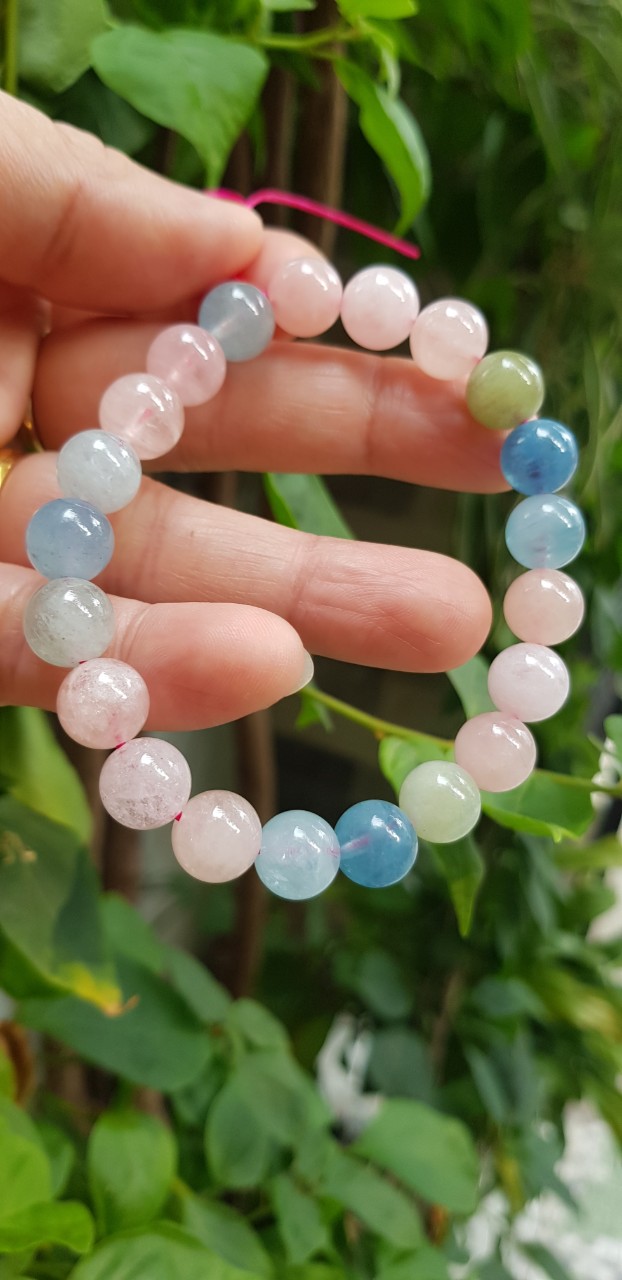 Chiếc Vòng Beryl đa sắc màu tự nhiên hạt size 9mm màu sáng bóng thiệt đẹp rẻ ạ