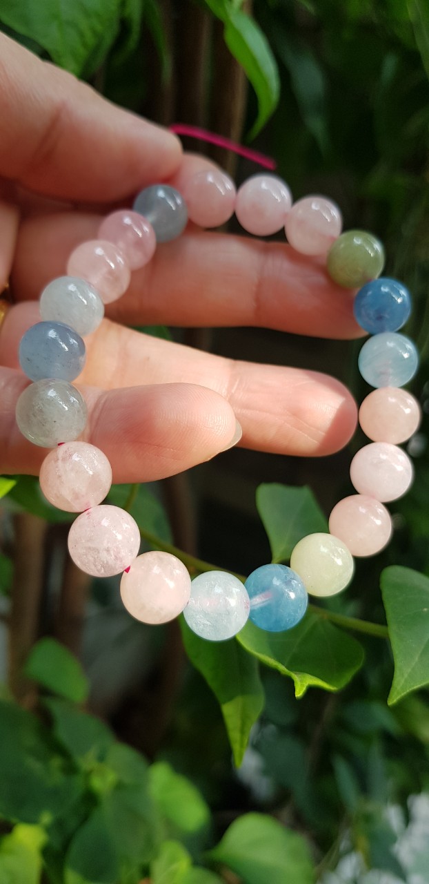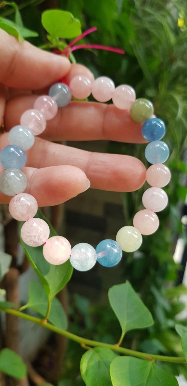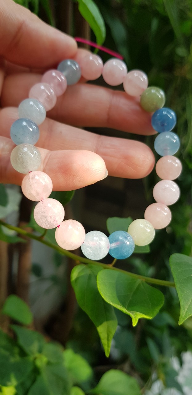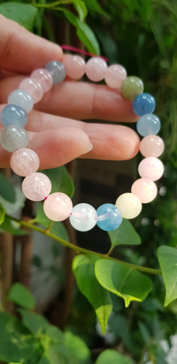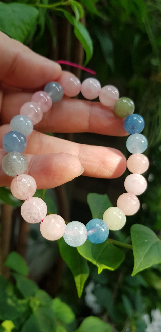 Chiếc Vòng Beryl đa sắc màu tự nhiên hạt size 9mm màu sáng bóng thiệt đẹp rẻ ạ