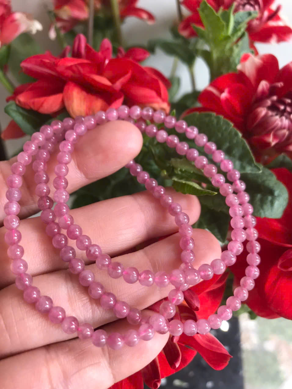 Chiếc Vòng Tay Chuỗi Quấn 3 Vòng Đá Tourmaline Hồng Tự Nhiên Đẹp Size hạt 4mm Nữ mệnh Hỏa và mệnh Thổ đeo xinh tay may mắn ạ