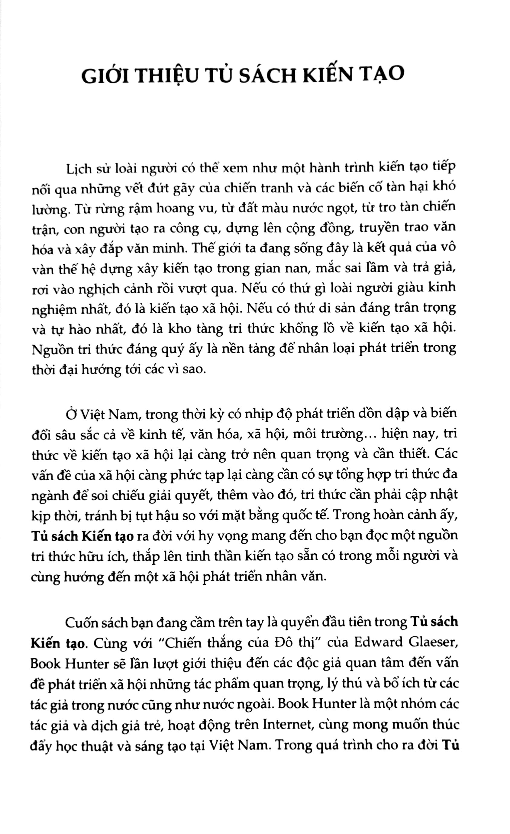 Mua tại TiktokChiến Thắng Của Đô Thị CHIẾN THẮNG CỦA ĐÔ THỊ là tác phẩm thực sự thay đổi suy nghĩ của các thành viên Book Hunter về kinh tế đô thị, ý nghĩa của cuộc sống đô thị, cũng như hiểu hơn vai trò của chính m.ình trong quá trình thúc đẩy phát triển đô thị. Cũng chính từ CHIẾN THẮNG CỦA ĐÔ THỊ mà chúng m.ình quen thêm nhiều người bạn có cùng quan điểm và chí hướng. Cuốn sách không chỉ được quan tâm bởi những bạn đọc sách sành sỏi về chủ đề chính trị và xã hội, mà còn được những nhà hoạch định chính sách, chuyên gia quy hoạch đô thị, kiến trúc sư và thậm chí cả các nhà đầu tư bất động sản săn tìm. Chúng m.ình tin rằng, cuốn sách có lẽ đã góp phần nào giúp họ đưa ra các quyết định đúng hơn.