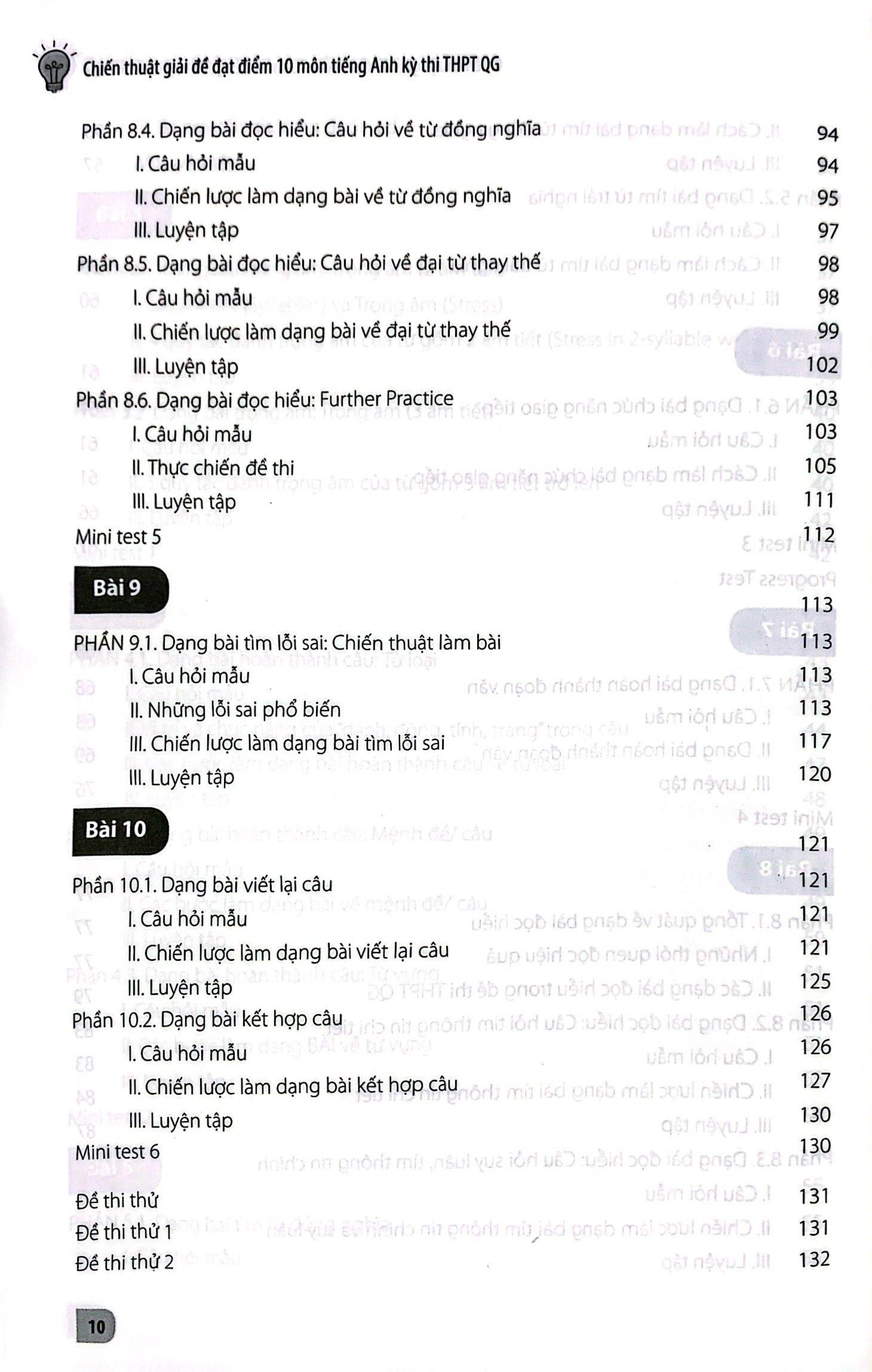 Chiến thuật giải đề đạt điểm 10 môn tiếng Anh – Kì thi THPT QG là cuốn sách dành cho các bạn học sinh đặt mục tiêu đạt điểm 10 môn tiếng Anh cho kì thi Trung học Phổ thông Quốc gia (THPT QG). Nội dung sách cung cấp các hiểu biết cần thiết về kì thi, cũng như tổng hợp chiến lược để chinh phục 9 dạng bài trong đề thi THPT QG.