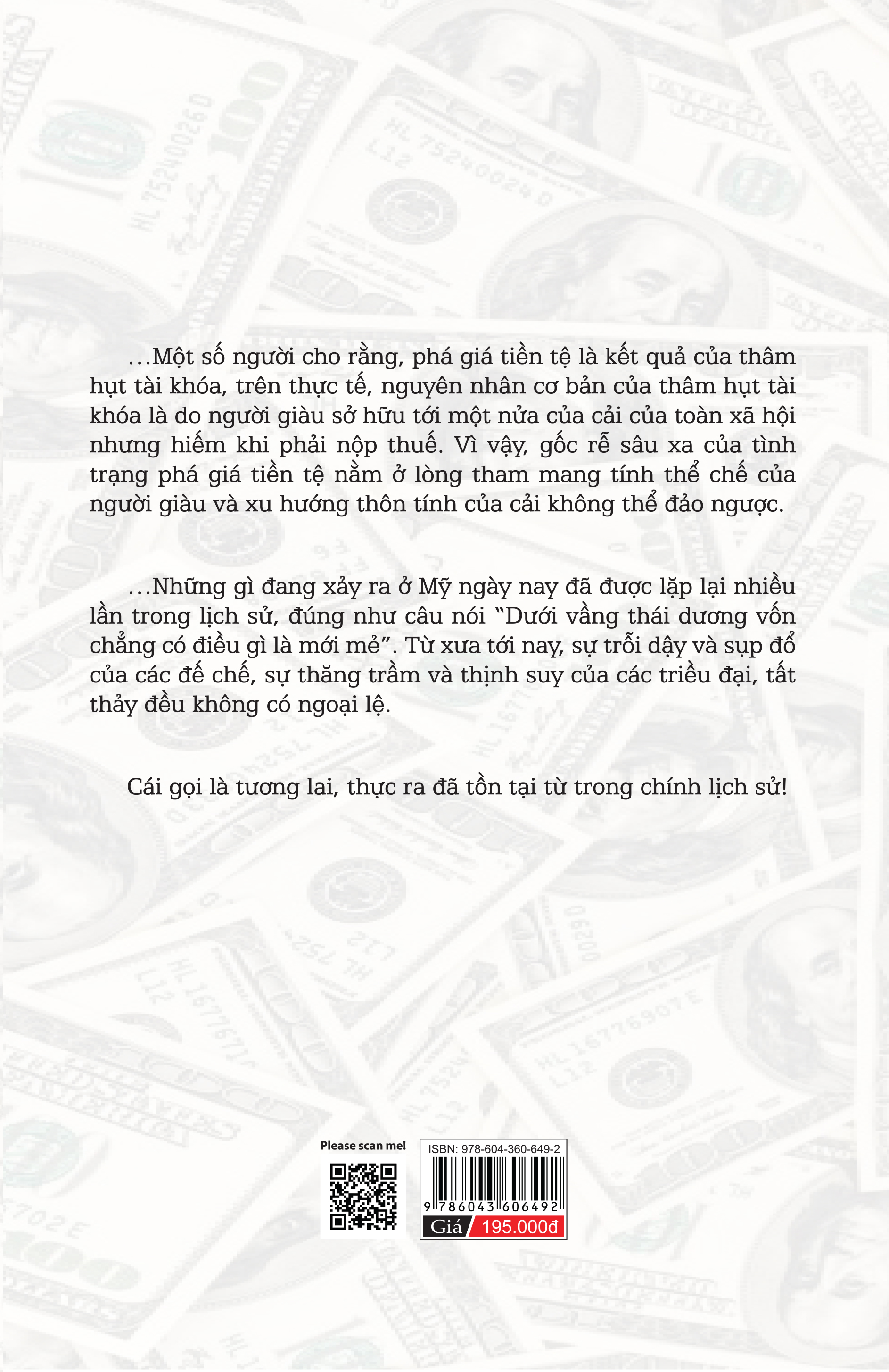 Ngoài ra, cuốn sách còn mở rộng tầm quan sát của độc giả đến giai đoạn những năm 2000, từ quan sát cận cảnh nền kinh tế Mỹ cho đến giai đoạn đánh giá và nắm bắt ngọn nguồn trong lịch sử, từ đó phục dựng lại một cách chân thực nhất mô hình của quá trình suy vong, từ đó hiểu được bản chất của tiền tệ cùng những định hướng, hướng đi trong tương lai.