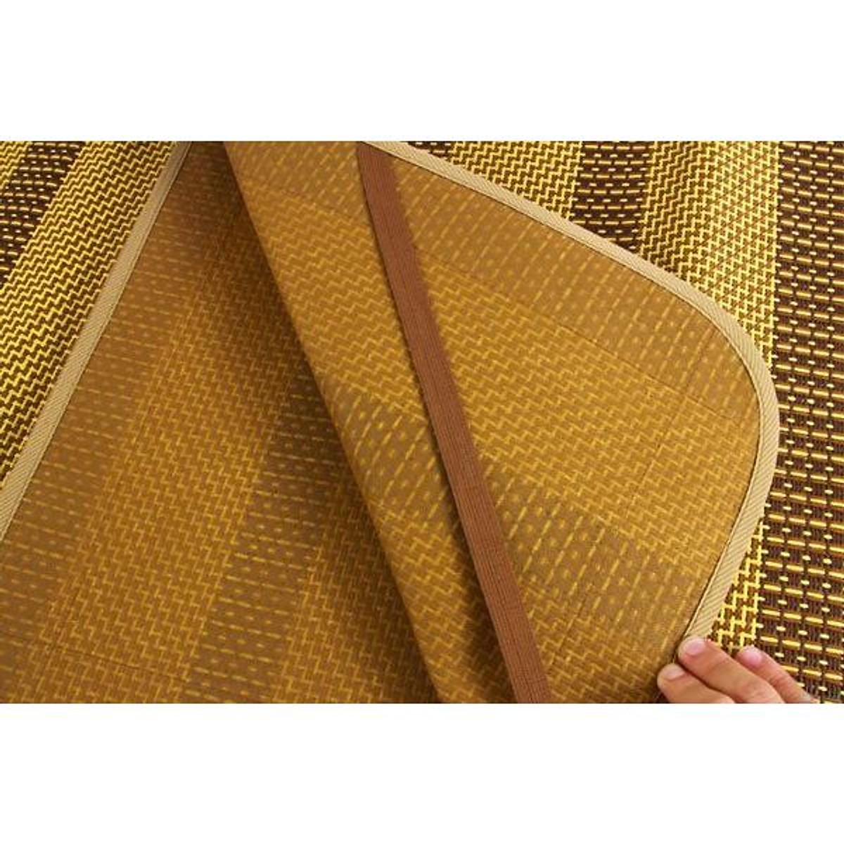 Chiếu điều hòa sợi mây tổng hợp được thiết kế với màu sắc hài hòa (vàng nâu) cùng những đường nét hoa văn đẹp và sang trọng. Chiếu gồm 2 lớp lớp sợi mây tổng