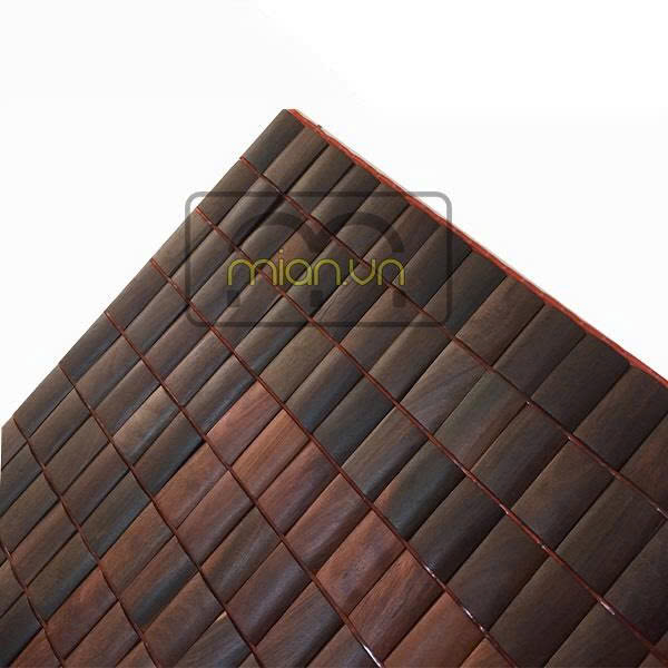 - Chiếu được tạo từ những miếng gỗ trắc mộc dẹt có kích thước 4cmx2,5cmx0,5cm – có 2 lỗ song song được lồng và đan với nhau bằng dây cước cao cấp 0.18ly (loại cước cao cấp có sức bền >1200kg).