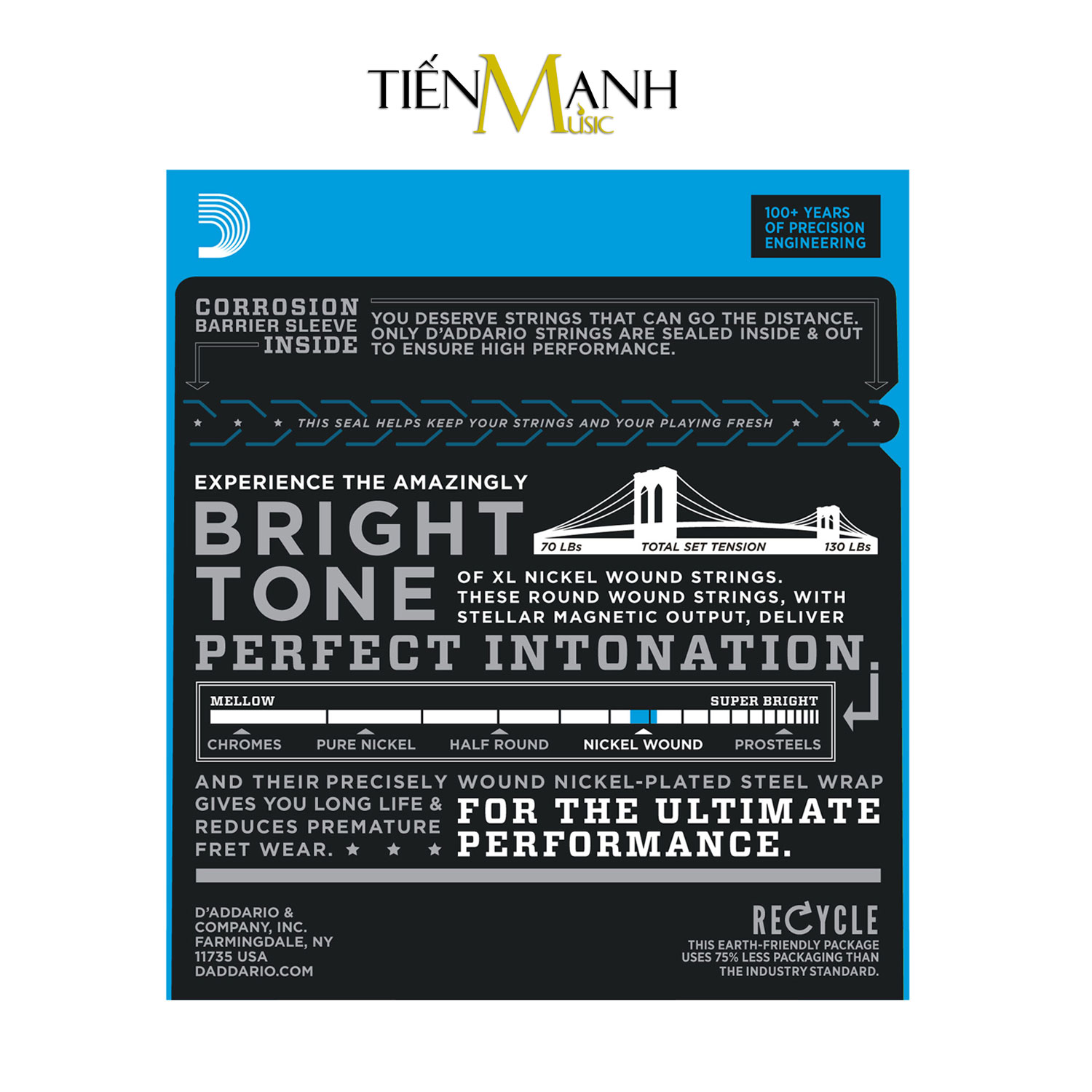 - Bộ 4 Dây Đàn Guitar Bass D'Addario EXL170 được sản xuất bằng thép mạ nickel với tông màu sáng đặc biệt và ngữ điệu xuất sắc. Âm bass thể hiện được hầu hết tất cả các thể