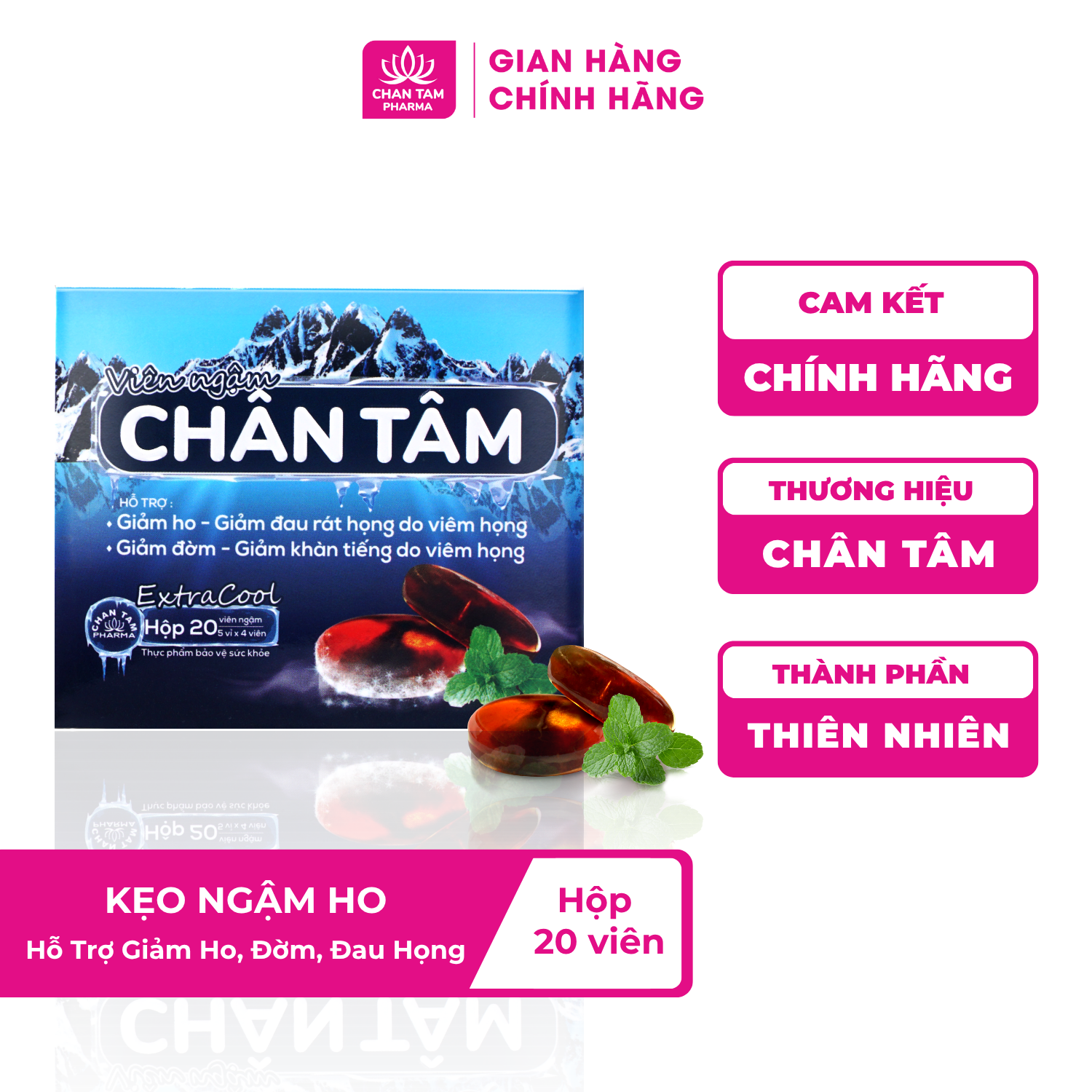 ✨[Chính Hãng] Kẹo ngậm ho Chân Tâm Hộp 20 Viên - Hỗ Trợ Giảm Ho, Đờm, Đau Họng