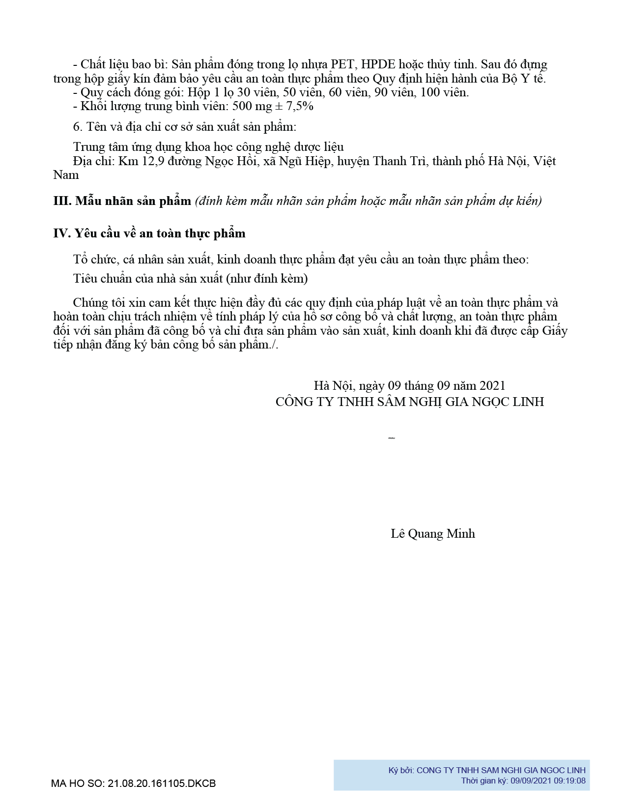 Sản xuất tại: Trung tâm Ứng dụng khoa học công nghệ dược liệu – Trực thuộc Viện Dược liệu – Bộ Y tế.