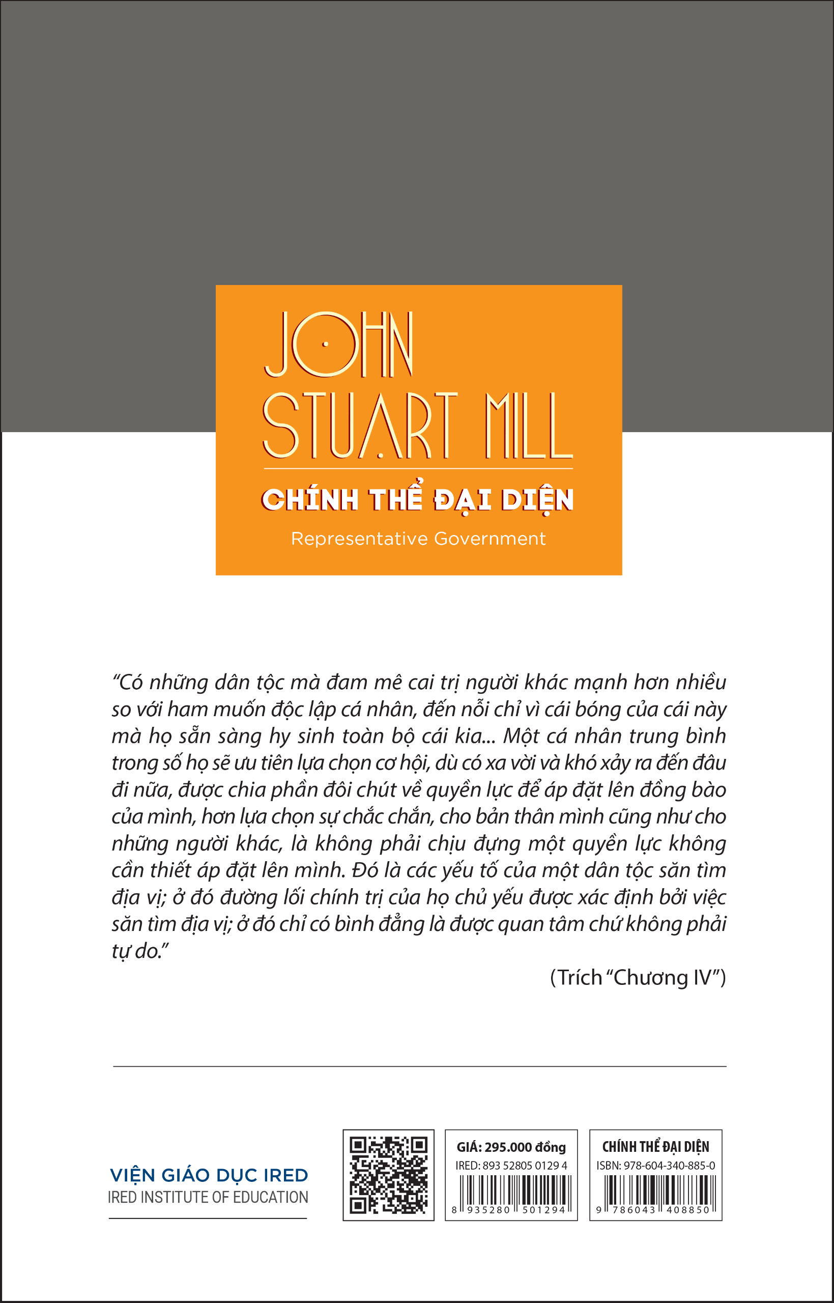 Tên tác phẩm : Chính Thể Đại Diện (Representative government) Tác giả: John Stuart Mill Số trang: 428