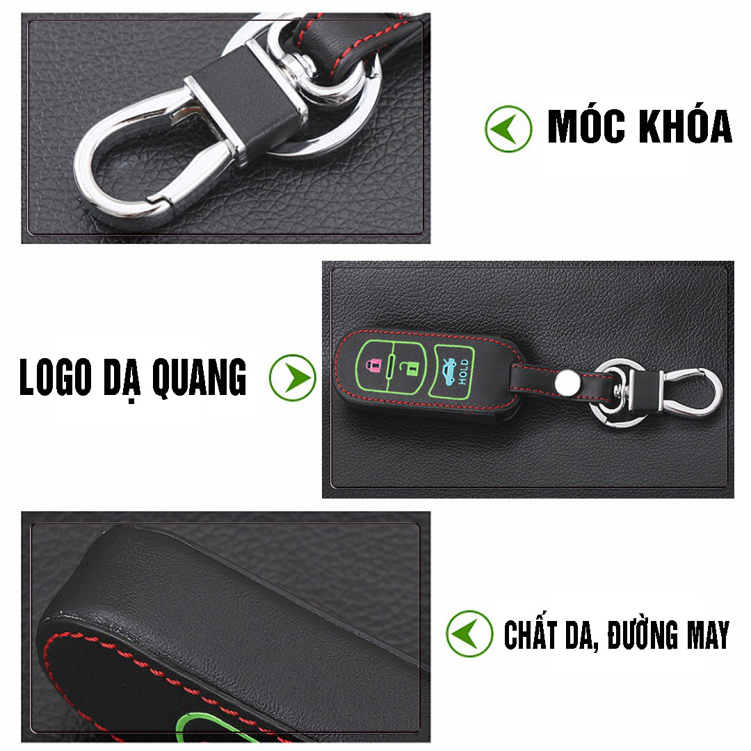 ✨Cho xe Mazda, bao da chìa khóa 3 nút dạ quang kiêm móc khóa chất liệu da, Inox MIHOCO Mazda 3N/ Hành chính hãng