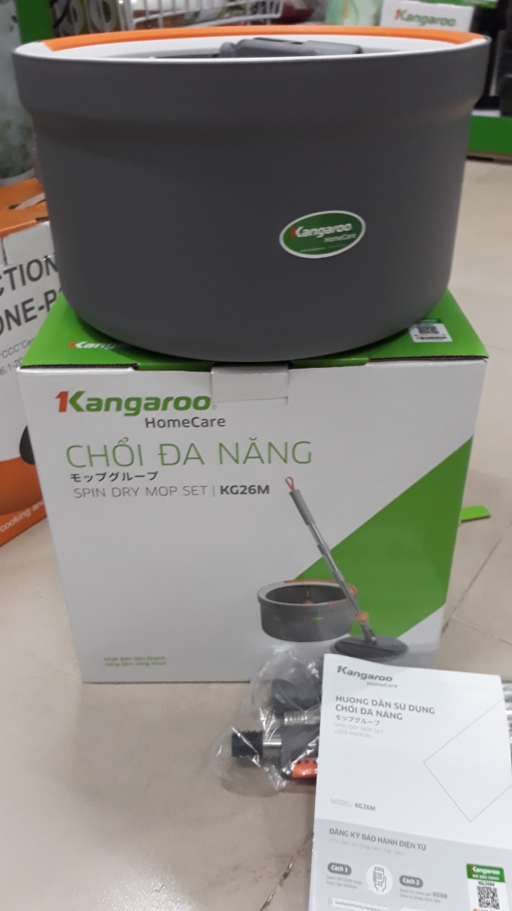 LAU SẠCH BỤI BẨN – TIỆN LỢI KHI DÙNG Tách nước sạch – bẩn riêng biệt, tiết kiệm nước   Chổi lau nhà tách nước thông minh Kangaroo KG26M tự phân loại nước bẩn và nước sạch. Giúp bạn giặt sạch bông lau hơn với lượng nước ít hơn. Sử dụng hệ thống vòi phun tuần hoàn cao áp biến tần loại bỏ vết bẩn và vô hiệu vi khuẩn, tiết kiểm 70% thời gian và công sức. Thùng giặt nhỏ gọn   Thiết kế đẹp, thùng giặt kích thước nhỏ 305305230 mm chứa 2.5 lít nước dễ dàng di chuyển, tiết kiệm diện tích đặt để mọi nơi trong nhà.   2 in 1 – Thao tác làm sạch vắt khô   Thiết kế bồn nước đôi bên trong và bên ngoài giúp bạn phân tách nước sạch và bẩn. Đồng thời thao tác làm sạch và vắt khô tích hợp ngay trong thùng giặt làm thao tác nhanh chóng hơn, tiết kiệm sức lao động. Với rổ quay ly tâm, đầu lau được vắt khô hơn một cách nhẹ nhàng mà không cần dùng tay. Bông lau sợi Nanoseo loại 99% vi khuẩn, khử mùi hôi cấp tốc   Bông lau cấu tạo từ sợi Nanoseo loại bỏ 99% vi khuẩn và khử mùi hôi cấp tốc. Kết cấu sợi nhỏ thấm hút nước tốt, lau sạch bụi bẩn và vắt khô hơn so với các loại vải thông thường. Đặc biệt bông lau KG26M to dầy giúp bạn lau sạch hơn – nhanh hơn so với các loại chổi lau thông thường. CÔNG NĂNG Hệ thống tự giặt thảnh thơi   Cây lau nhà thông minh, tự giặt, tự vắt thảnh thơi với 1 thao tác ấn cây lau. Công nghệ mới loại bỏ 99% vi khuẩn, khử mùi hôi cấp tốc. Chế độ vắt tự động, chổi lau sẽ có độ ẩm thích hợp giúp bạn dễ dàng lau sạch bụi bẩn trong nhà.#choilaunha #choilaunhadanang