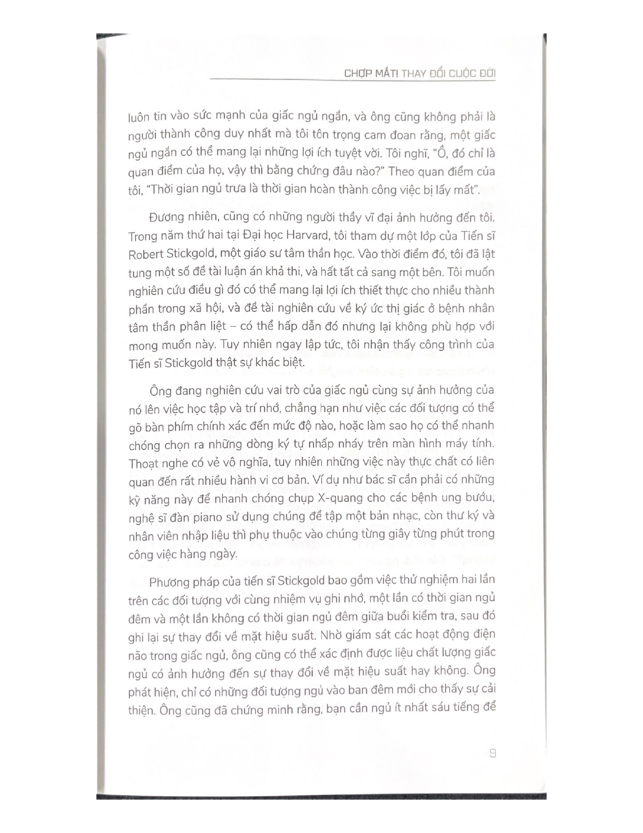 Mua tại TiktokChợp Mắt! Thay Đổi Cuộc Đời - Take A Nap! Change Your Life-Vanlangbooks I.Giới thiệu sách Quyển sách mang tính đột phá này của tiến sĩ Sara C. Mednick và Mark Ehrman đã cung cấp các bằng chứng thuyết phục, chứng minh một giấc ngủ ngắn vào buổi trưa sẽ mang lại những lợi ích về tâm sinh lý lẫn nhận thức. Nếu bạn muốn luôn tỉnh táo, năng động và có tâm trạng tốt trong cả ngày dài thì hãy chợp mắt một chút”.