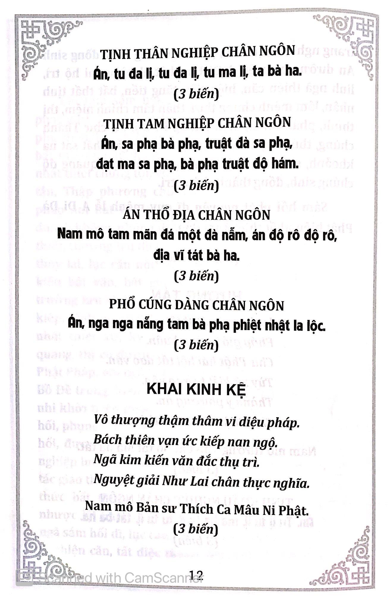 Mua tại TiktokChư Kinh Nhật Tụng là tuyển tập các kinh chú thường tụng trong ngày của Phật tử tại gia cũng như xuất gia, Kinh được phiên âm Hán Việt thường được tụng tại các chùa theo truyền thừa Bắc tông. Đặc biệt quý thầy xuất gia học chữ Hán thường tụng quyển này. Ngày nay các chùa và các cụ lớn tuổi vẫn tụng. Ngoài ra các Phật tử trung niên và thanh niên nên tụng Kinh đã được dịch nghĩa như quyển Kinh Chú Thường Tụng của Phân Viện Nghiên Cứu Phật Học ấn hành. Vì "Tụng kinh giả liễu Phật tri kiến" tức là Tụng kinh là để hiểu được nghĩa của kinh, tri kiến của Phật đà.