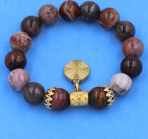 ✨Chuỗi tay Gỗ Hóa Thạch size 12 ly - Vòng tay Bát Quái vàng VGHTBQHKV12 - hợp tất cả các mệnh