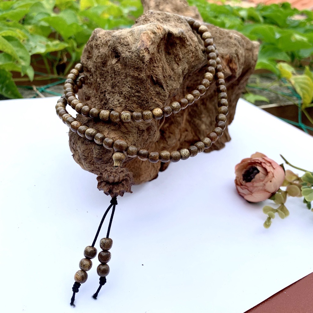 Mô tả sản phẩm: Vòng tay Trầm Hương chuỗi tràng 108 hạt/6mm - tặng kèm thêm dây và kim để thay thế.