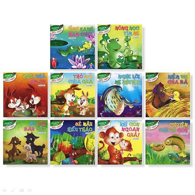 Chuyện Kể Cho Bé Hiếu Thảo - Trọn Bộ 10 Cuốn (Tái Bản 2017) gồm các cuốn: 1. Chuyện Kể Cho Bé Hiếu Thảo: Đi Tìm Báu Vật 2. Chuyện Kể Cho Bé Hiếu Thảo: Nghe Lời Mẹ Khuyên 3. Chuyện Kể Cho Bé Hiếu Thảo: Chuyện Chú Rô Con 4. Chuyện Kể Cho Bé Hiếu Thảo: Nòng Nọc Tìm Mẹ 5. Chuyện Kể Cho Bé Hiếu Thảo: Ngôi Nhà Ấm Áp 6. Chuyện Kể Cho Bé Hiếu Thảo: Khỉ Con Ngoan Quá 7. Chuyện Kể Cho Bé Hiếu Thảo: Ếch Xanh Ham Chơi 8. Chuyện Kể Cho Bé Hiếu Thảo: Sẻ Nâu Hiếu Thảo 9. Chuyện Kể Cho Bé Hiếu Thảo: Thỏ Min Chia Quà 10. Chuyện Kể Cho Bé Hiếu Thảo: Niềm Vui Của Bà Những câu chuyện đồng thoại ám áp tình yêu thương, dạy bé biết hiếu thảo, biết nghe lời, biết chăm sóc, nhường nhịn và yêu quý những người thân yêu nhất của bé: ông bà, cha mẹ, anh chị em. Với nét vẽ tự nhiên, sinh động, màu sắc tươi vui của họa sĩ Phùng Duy Tùng, các bé không chỉ đọc truyện mà còn được làm quen với những bạn động vật đáng yêu như bạn Thỏ Con, Khỉ Con, Dê Con, Ếch Xanh, Cá Chuồn, Chim Sâu... Qua những câu chuyện của các bạn nhỏ này, bé sẽ cảm nhận được sự ấm áp của tình cảm gia đình, và biết hiếu thảo với những người thân yêu. Tất cả các cuốn trong bộ sách được thiết kế một trang đặt lời riêng có những chi tiết trang trí đáng yêu bên cạnh một trang tranh minh họa. Phần lời được in chữ to, rõ ràng, phù hợp với các bé mẫu giáo, với các bé biết đọc sớm thì đây là những cuốn sách tuyệt vời để bé hứng thú tập đọc. Tác giả: Nhiều Tác Giả. Xuất bản: 2015 Nhà xuất bản: Kim Đồng Nhà phát hành: Kim Đồng Dạng bìa: Bìa Mềm Số trang: 10/quyển