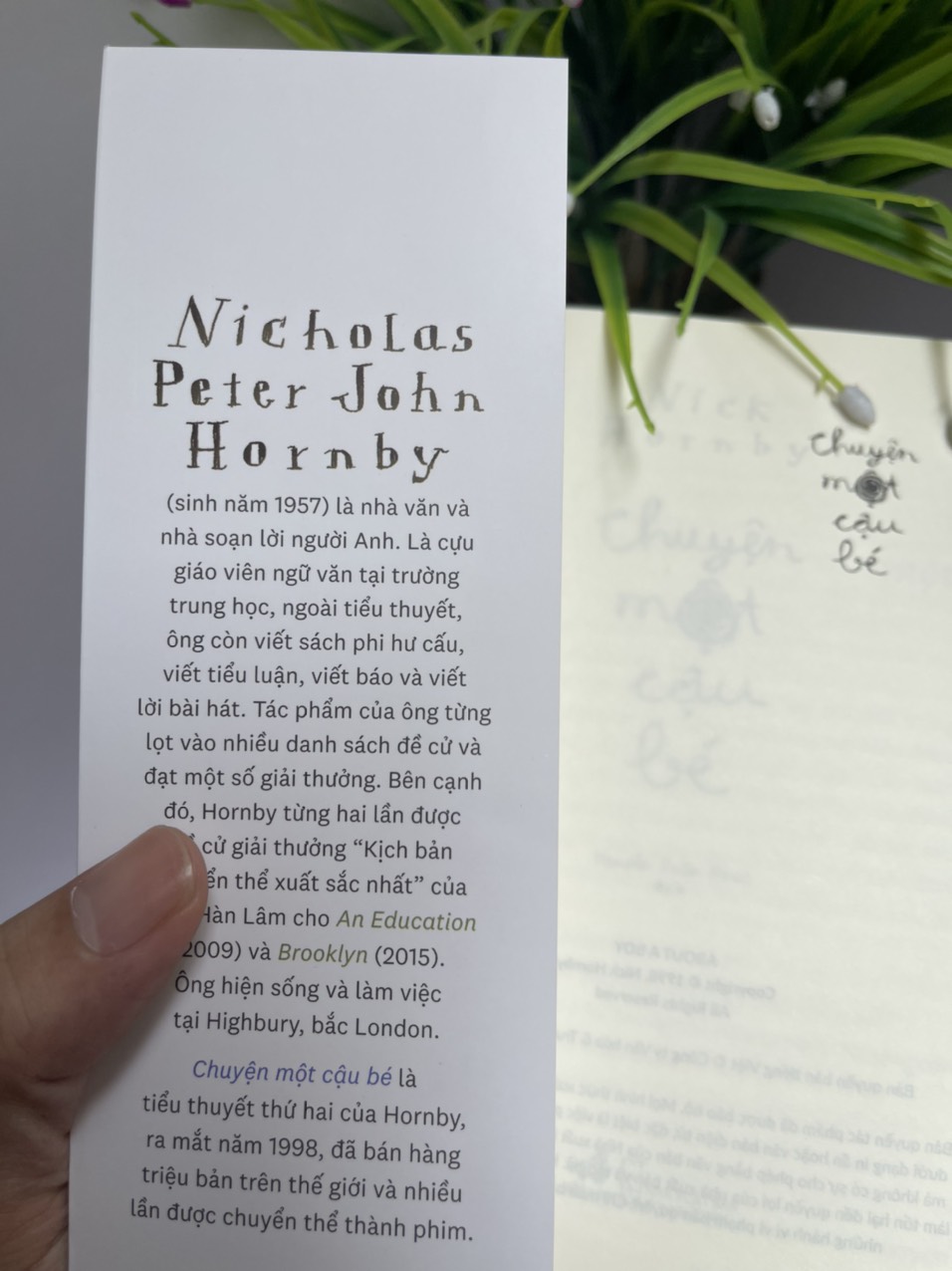 Nicholas Peter John Hornby (sinh năm 1957) là nhà văn và nhà soạn lời người Anh. Là cựu giáo viên ngữ văn tại trường trung học, ngoài tiểu thuyết, ông còn viết sách phi hư cấu, viết tiểu luận, viết báo và viết lời bài hát. Tác phẩm của ông từng lọt vào nhiều danh sách đề cử và đạt một số giải thưởng. Bên cạnh đó, Hornby từng hai lần được đề cử giải thưởng “Kịch bản chuyển thể xuất sắc nhất” của Viện Hàn Lâm cho An Education (2009) và Brooklyn (2015). Ông hiện sống và làm việc tại Highbury, bắc London.