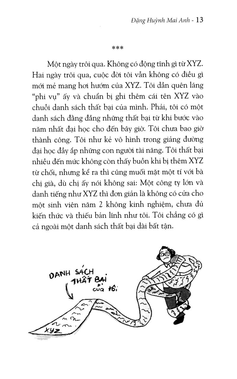 Câu chuyện của Mai Anh văn phong hài hước, dí dỏm, lôi cuốn bạn đọc bởi những sự thật gần gũi, sinh động đối với bất cứ sinh viên nào nhưng cũng rất ý nghĩa với những bài học sâu sắc về sự tích lũy kiến thức cho cả một quãng đời chứ không chỉ đơn thuần là nhật ký của một thực tập sinh.