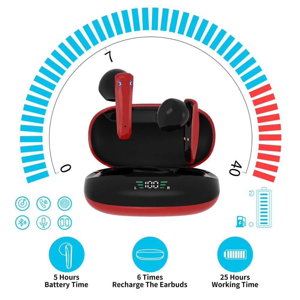 Features: BT 5.0 brings high data transfer speed, no latency, stable connection and low power consumption. Multi-functional Touch control let you answer/reject calls, play/pause songs, wake up voice assistant, by touching these in-ear wireless headphones