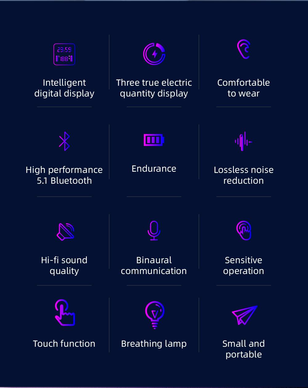 Features: BT 5.0 brings high data transfer speed, no latency, stable connection and low power consumption. Multi-functional Touch control let you answer/reject calls, play/pause songs, wake up voice assistant, by touching these in-ear wireless headphones