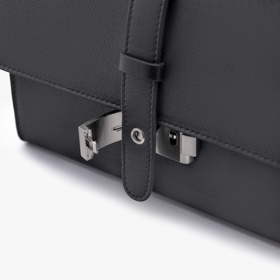 Clutch cầm tay nam da bò Taiga màu đen khóa số CK14