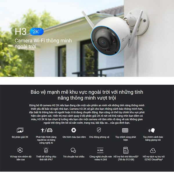 Đặc tính sản phẩm CMR Ezviz H3 2K (CS-H3-R100-1H3WKFL) Hỗ trợ Phát hiện dáng người/xe bằ