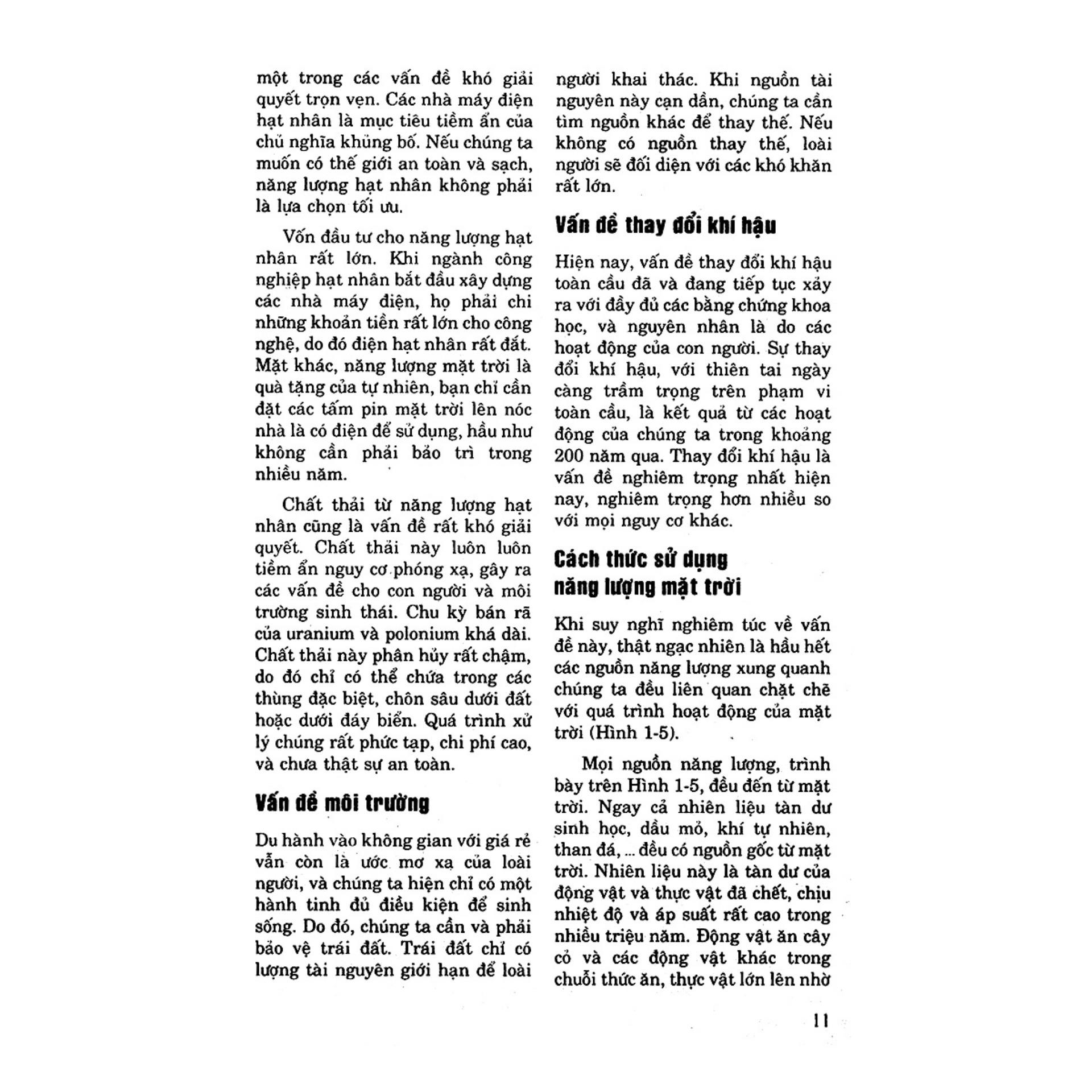 Cuốn sách này giới thiệu chi tiết các dự án ứng dụng năng lượng mặt trời trong ngôi nhà hoặc trên mảnh vườn của bạn. Các dự án đó tương đối đơn giản, chi phí trong tầm tay của bạn, nhưng hiệu quả có, không đòi hỏi lý thuyết cao siêu, chỉ cần bạn nhận ra lợi ích của việc sử dụng năng lượng mặt trời và quyết tâm thực hiện.
